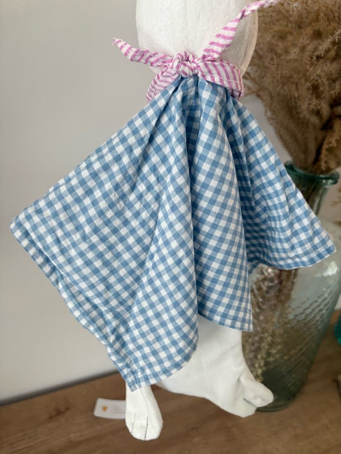Doudou lapin chien blanc bleu Vichy - photo numéro 3