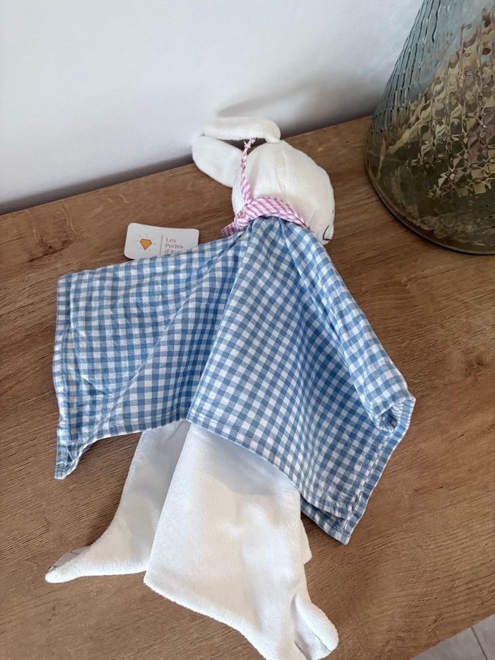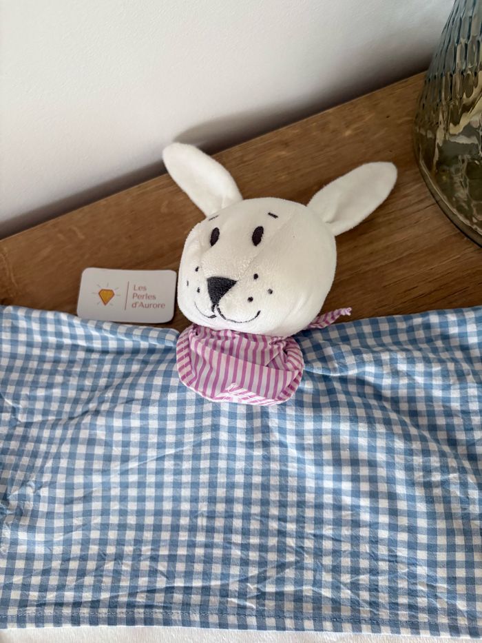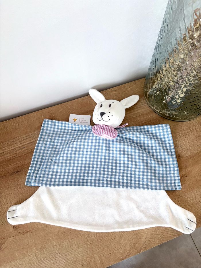 Doudou lapin chien blanc bleu Vichy - photo numéro 1