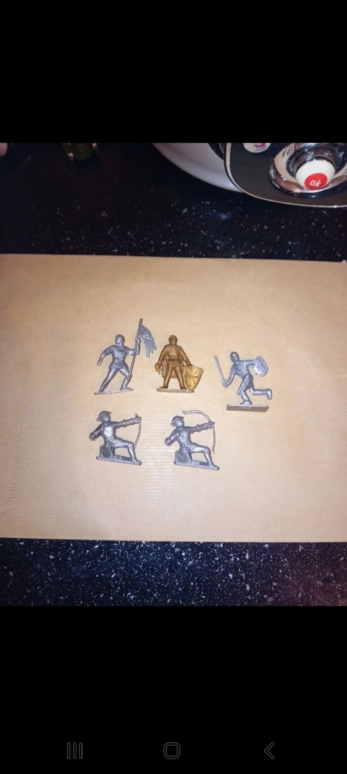 Lot de 5 petites figurines chevaliers en plastiques 5cm Il y a une figurines ou il manque une main ( voir photo)
