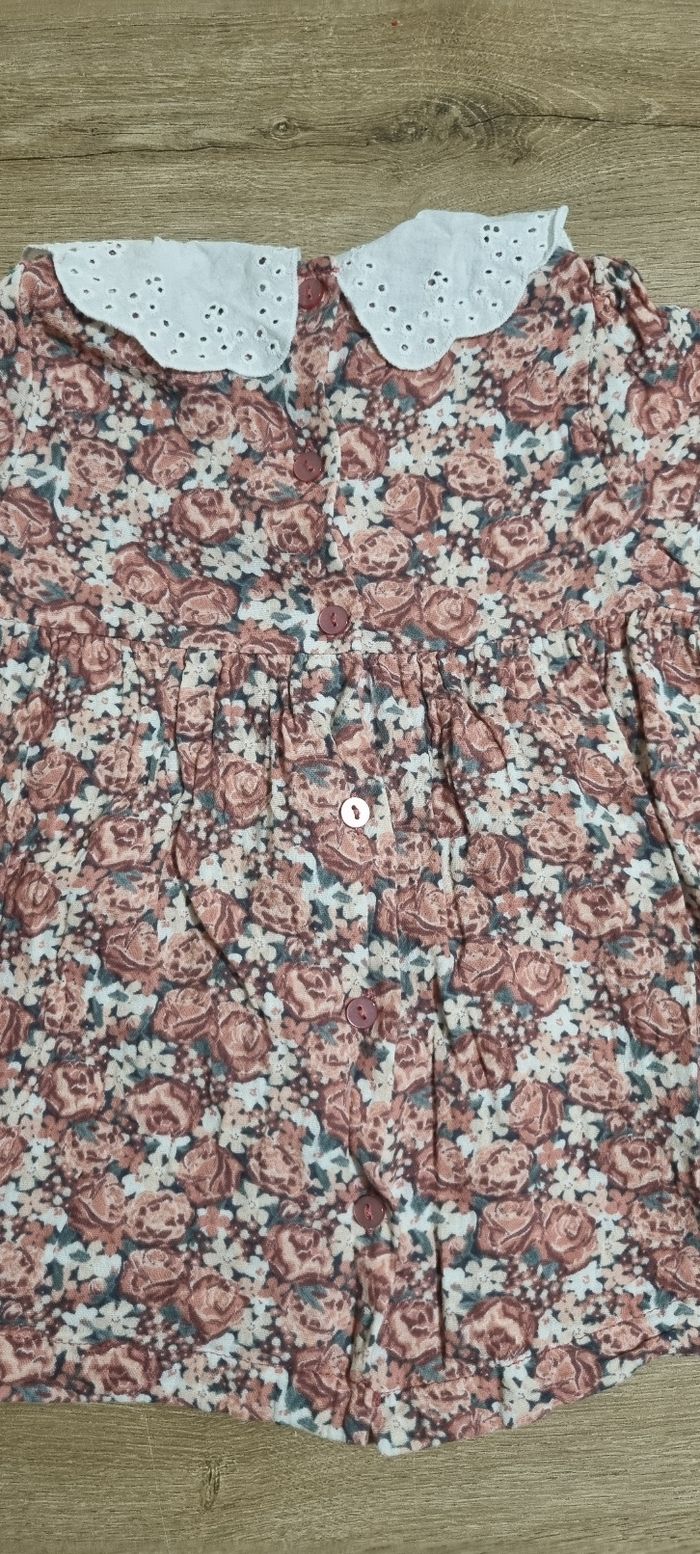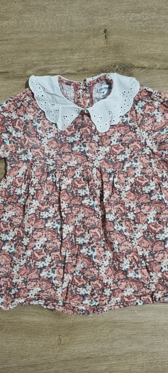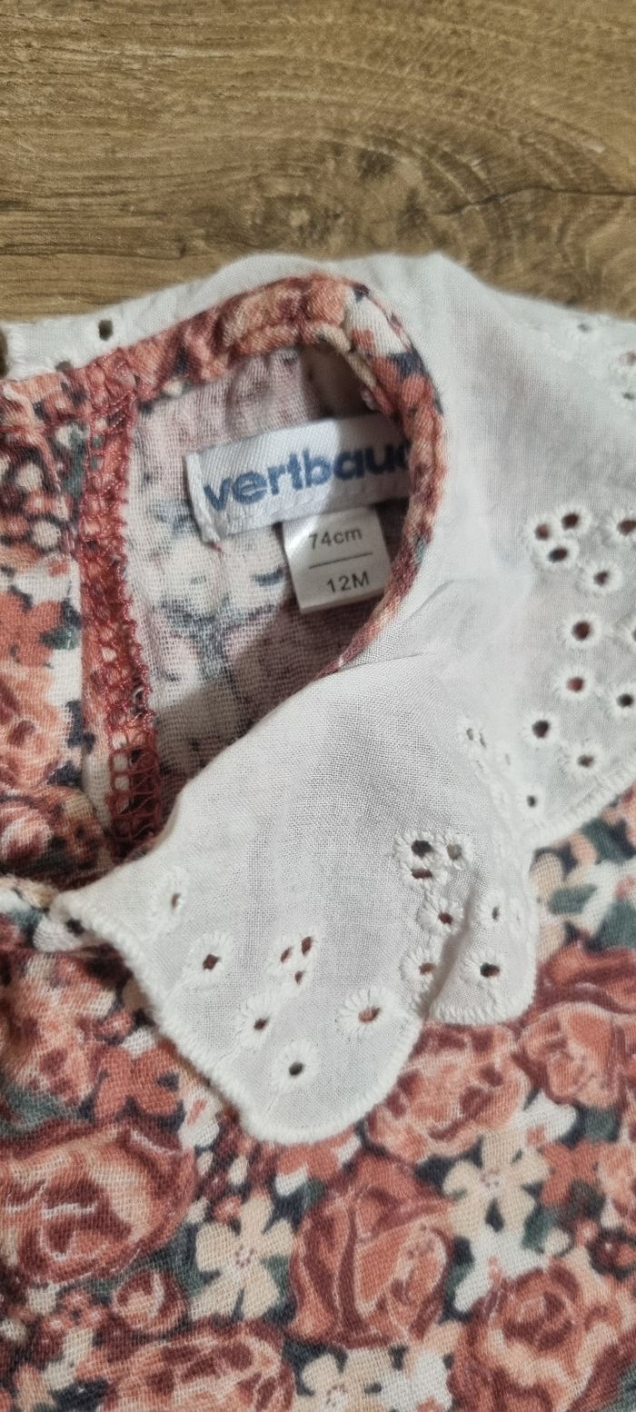 Robe légère à manches longues à motifs fleuris avec col claudine en dentelle Fermeture par boutons le long du dos Vertbaudet taille 12 mois Parfait état