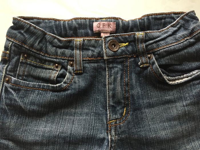 📌Si c'est votre première commande utiliser le code parrainage dans mon profil vous aurez une réduction 📌Pantacourt jean cfk monoprix, 8ans, un petit accro devant, et une petite usure devant sur l autre jambe, et une petite tache a l arriere #fille8_mondressing11_bv Boite O