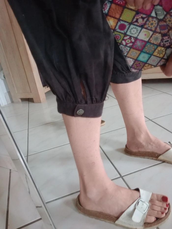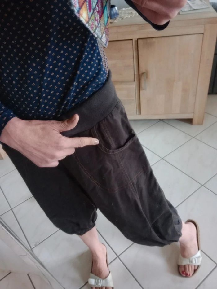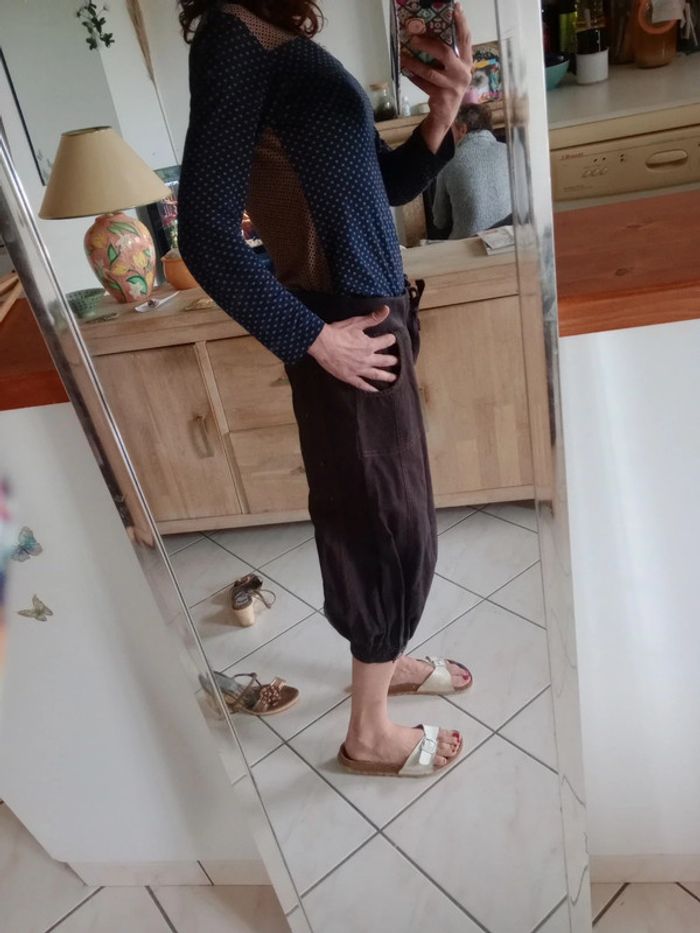 Idéal belle saison, pantacourt en lin à 55 % et en coton à 45 % voir avant dernière photo Présence de deux poches au niveau des hanches, d'une large ceinture élastique au niveau de la taille avec un lien Dans le bas des jambes présence de deux boutons à pression voir dernière photo Longueur 77 cm #carineleray_femme_42
