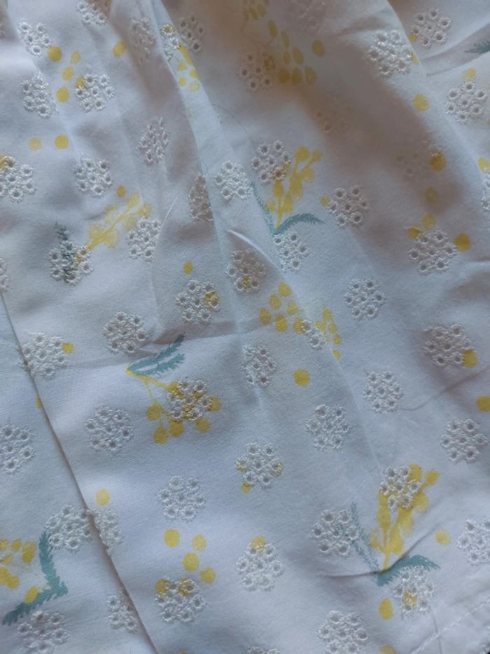 #laetitia8110filleT8ans Jupe blanche avec des petites fleurs jaunes. Ceinture élastique. Peu portée.