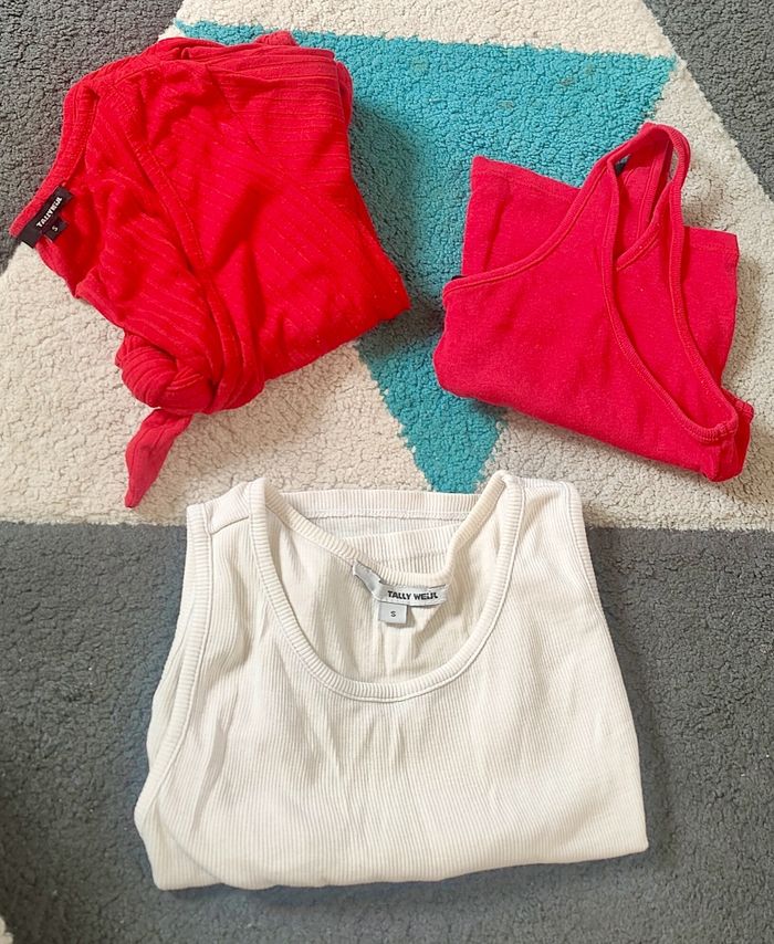 Bonjour, je vends ce lot de trois top courts femme. • Taille : S • Marque : Tally Weijl • État : très bon état • Couleur : rouge / blanc N'hésitez pas à faire un lot (prix en réduction). 📉 Envoie rapide et soigné (de préférence Mondial Relay ⚠️). 📦 Pour de plus amples informations, envoyez-moi un message privé sans hésiter. 😁