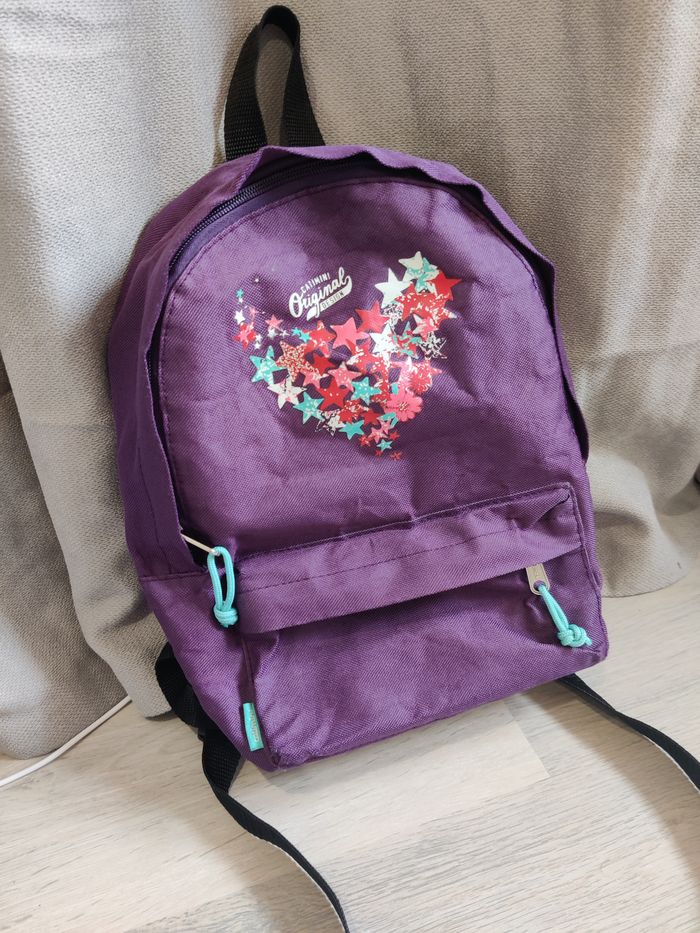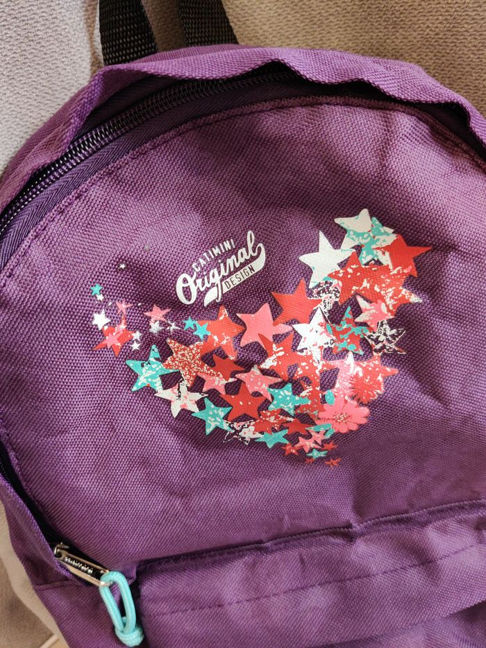 Sac à dos violet à motif Catimini - très bon état, peu servit - poche zippée sur le devant - bretelles ajustables - environ 30 cm de haut #caro86170 #caro86170accessoires #caro86170sac #catimini - envoi rapide et soigné