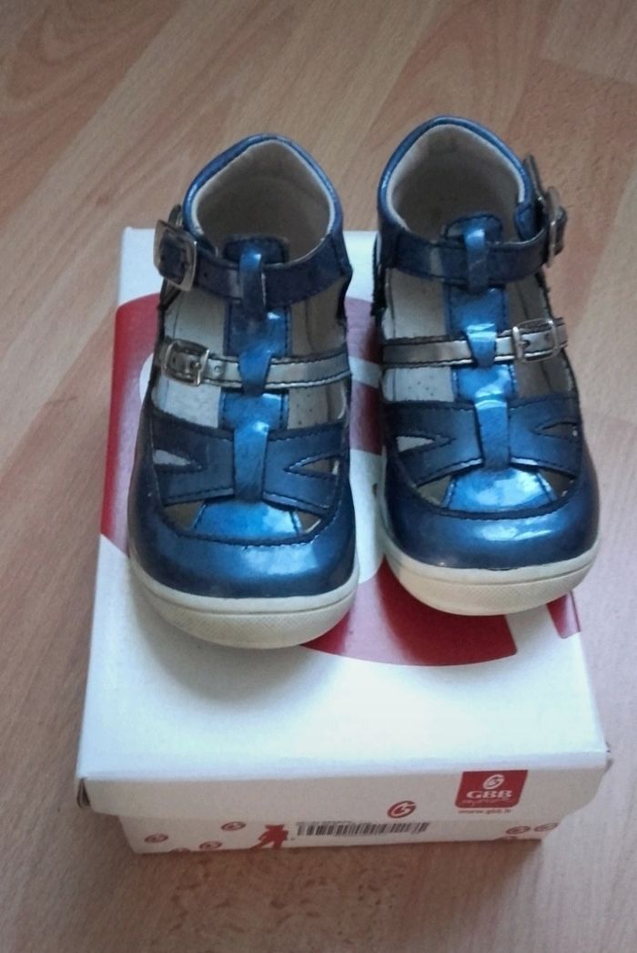 Chaussures mi-saison bleues vernis GBB. Bon état car le contour blanc a noirci.