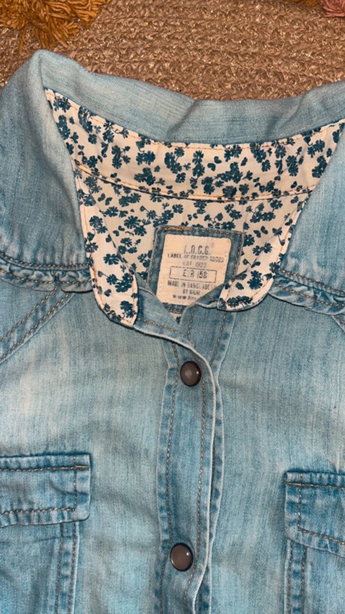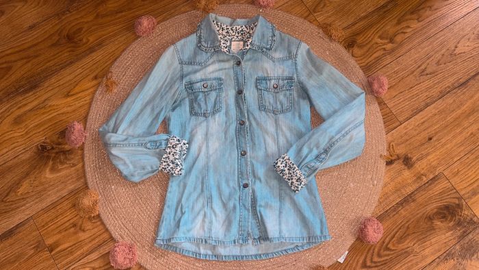 Chemise en jean Détail fleurs aux manches et col Taille XS / S H&M #femmetaillexsmarinefoureau #femmetaillesmarinefoureau