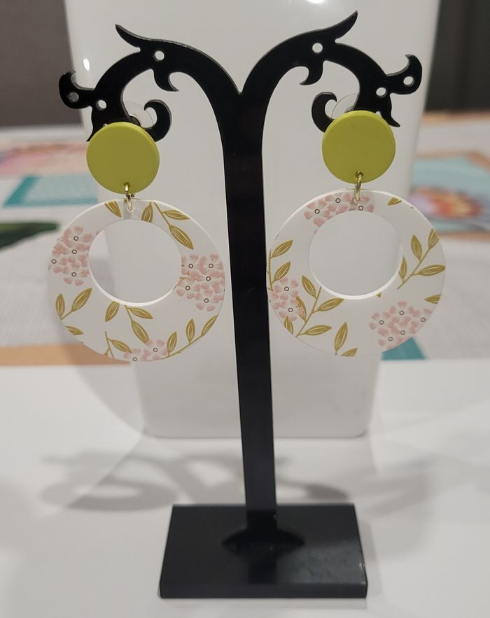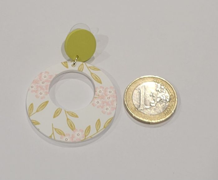 BOUCLES D'OREILLES RONDES THEME PRINTANIER ! NEUF 1 paire de boucles d'oreilles forme ronde theme printanier Diametre : 3,8 cms. Hauteur : 5,2 cms. N'hésitez pas à regarder mes autres ventes. ( beaucoup de coloris et modeles disponible) Envoi rapide et soigné.
