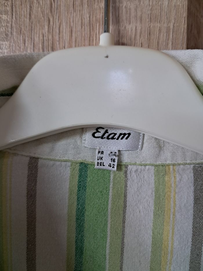 Tunique Etam taille 42/44 à rayures Avec ceinture Boutonnière à l'avant Une tâche sur la ceinture Bien porté Coton et Lin