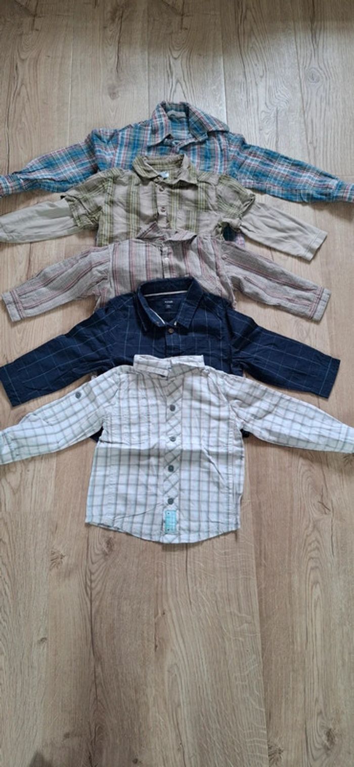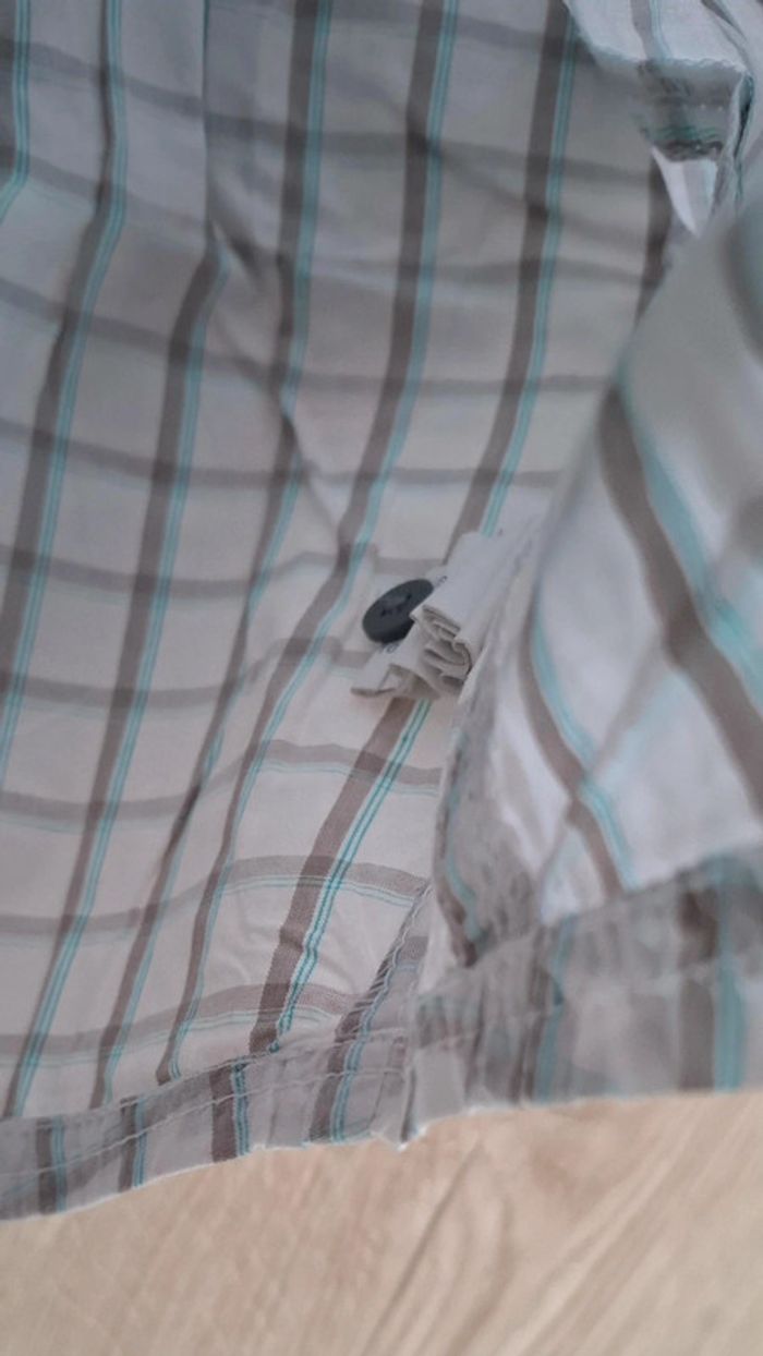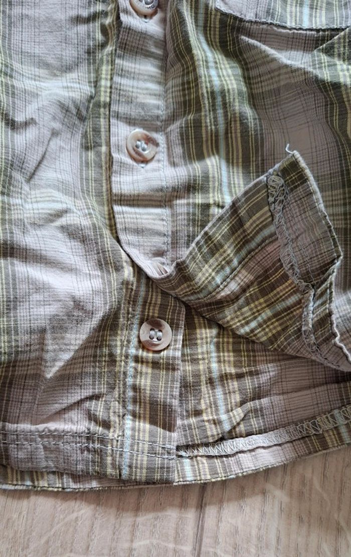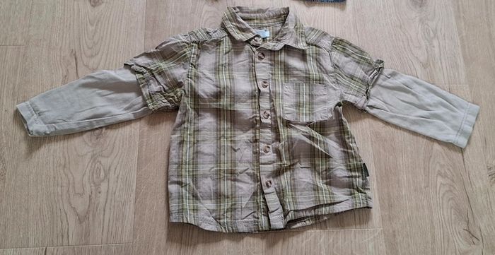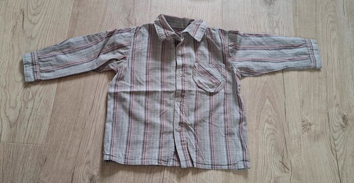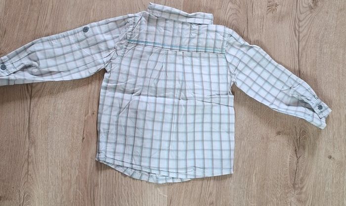 - 1 blanche a carreaux TAO, Tape à l'œil, 23mois/86cm, bouton d’avance en place, neuve, lavée jamais portée. Possibilité de remonter les manches pour faire une chemisette