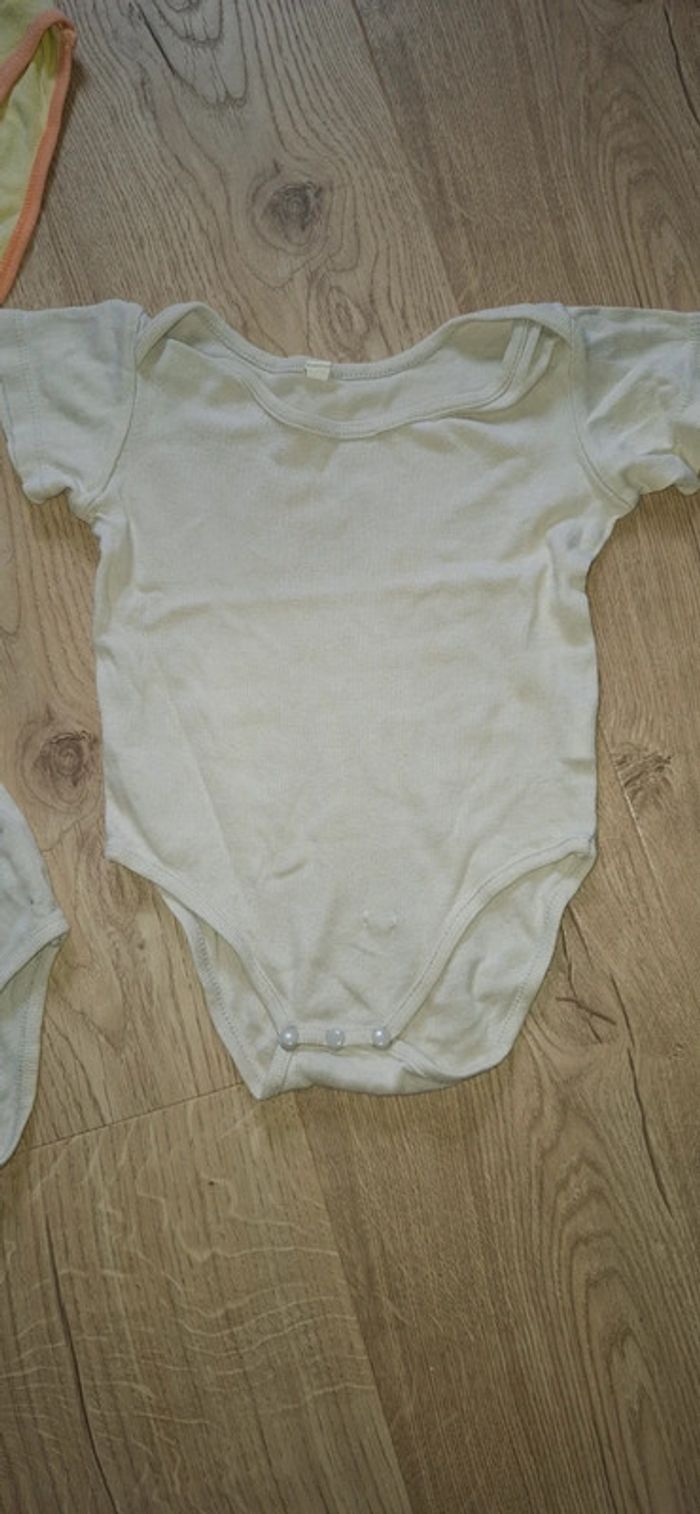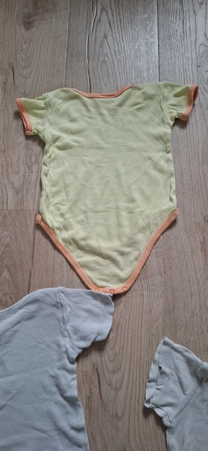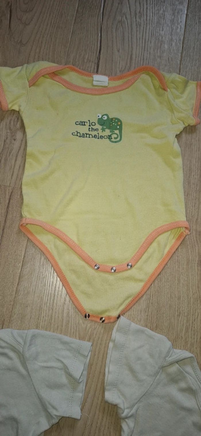 - 1 jaune et orange, flocage "Carlo the Chameleon" dessin caméléon, étiquette effacée pour la taille mais même dimension que les 86cm