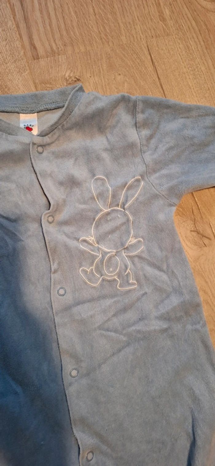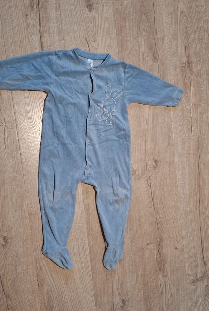 #loluxiagarcon2ans Lot de 2 pyjamas, forme grenouillère, ouverture pressions sur le devant, avec pieds : -1 bleu clair Obaibi 23mois, decor flocage effet craquelé d’origine - 1 bleu Baby Club 92cm =2ans. Décor broderie lapin BE car portés, pas de défaut hormis 1 micro tâche discrète sur le bleu ciel, cf photo.