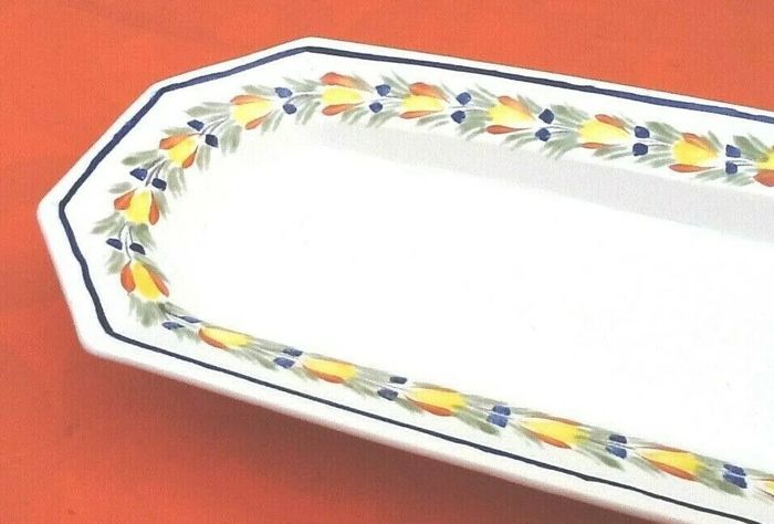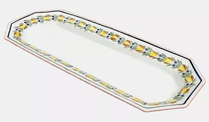 Grand plat de service Céramique de Luxe Collection Tiffany & Co France Faïence polychrome décor guirlande floral (465x180x30)mm Poids : 1kg270 Les arts de la table Tiffany & Co Une collection unique, d' une élégance intemporelle pour créer une décoration de table inoubliable, avec motifs d’archives, des couleurs éclatantes et matériaux de haute qualité.