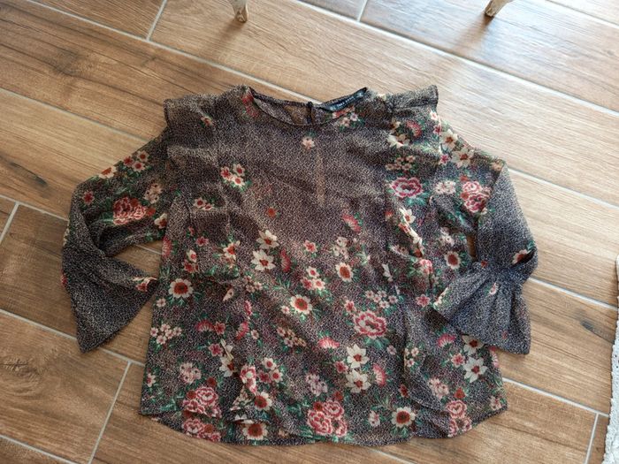 Blouse voile a volants fleurie Zara - photo numéro 1