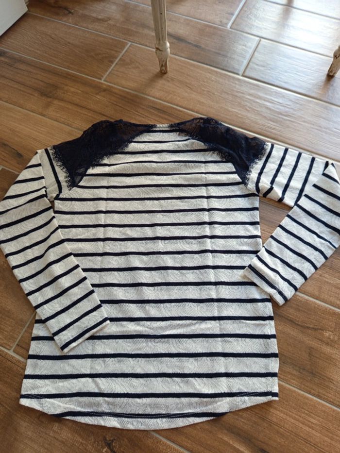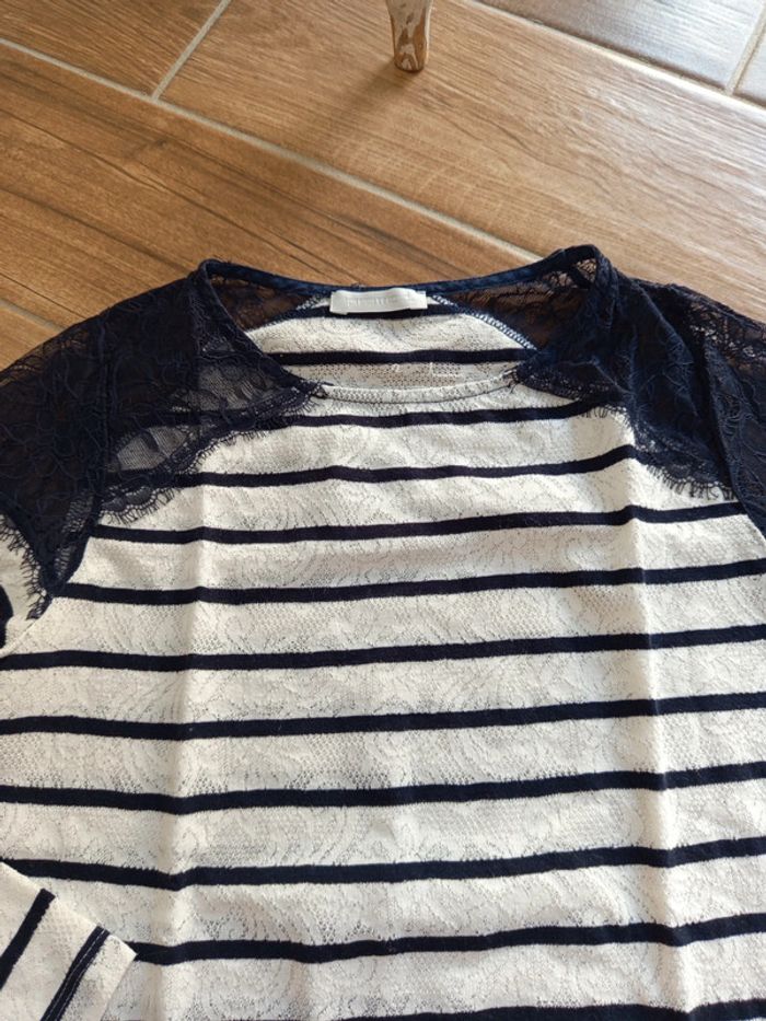 Tee shirt marinière et dentelle Promod - photo numéro 5