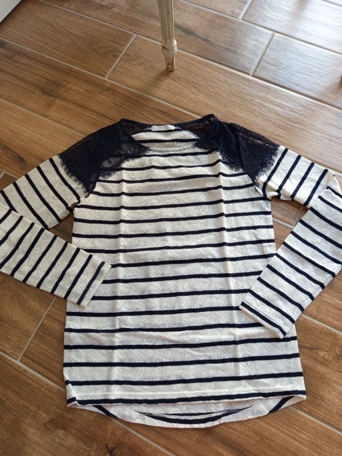 Tee shirt marinière et dentelle Promod Taille S