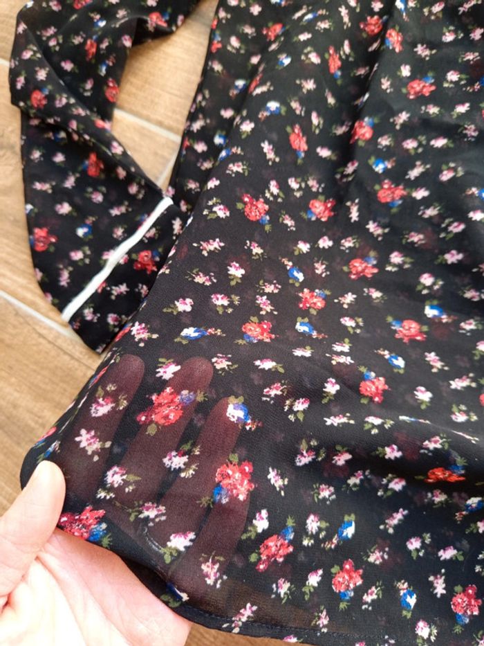 Blouse en voile noire liberty (rouge/rose) avec col claudine Transparent Boutonnière dos Zara T.S