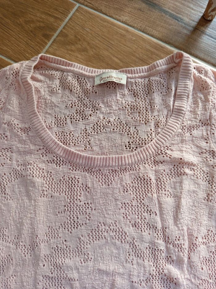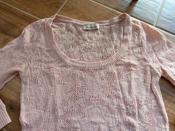 Pull fin rose maille ajourée Stradivarius - photo numéro 3