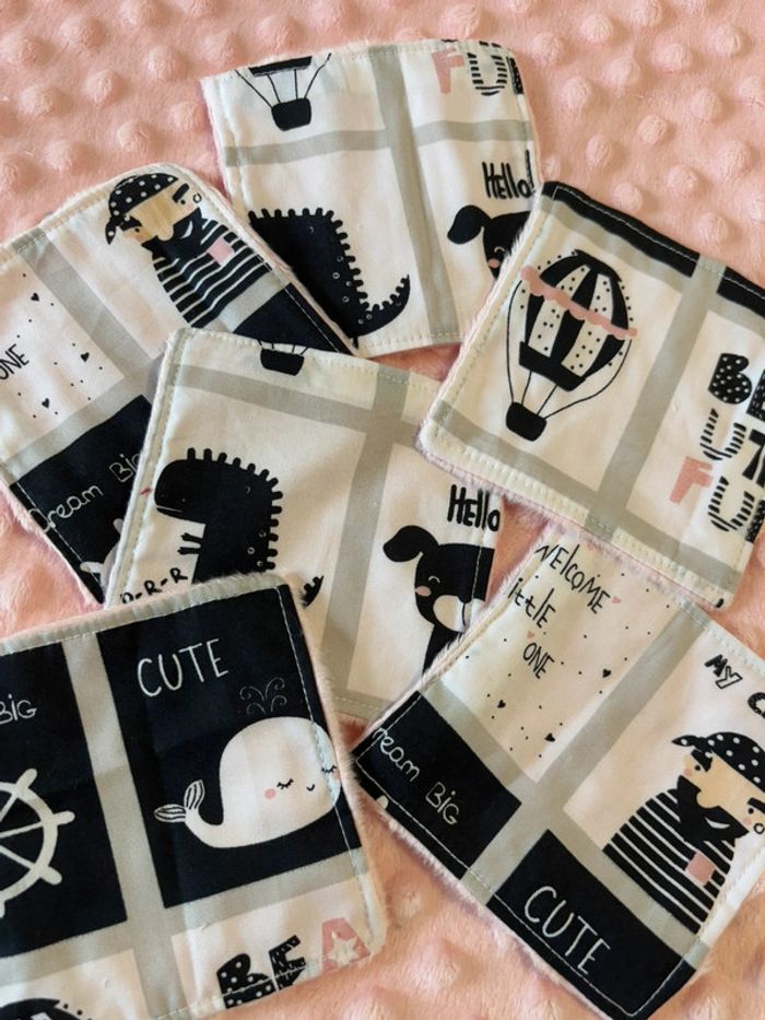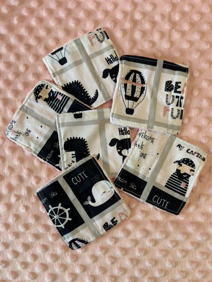 Info: vendue à l’unité, me demander pour plus de quantité Lingette carrée avec un côté en coton imprimé oeko tex et un côté lavant ultra doux en éponge bambou Idéale pour la toilette du visage, adulte comme enfant, le démaquillage et le change de bébé Les motifs peuvent varier en fonction de la découpe du tissu Lavable en machine