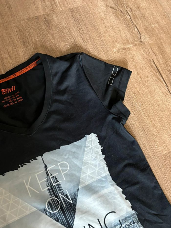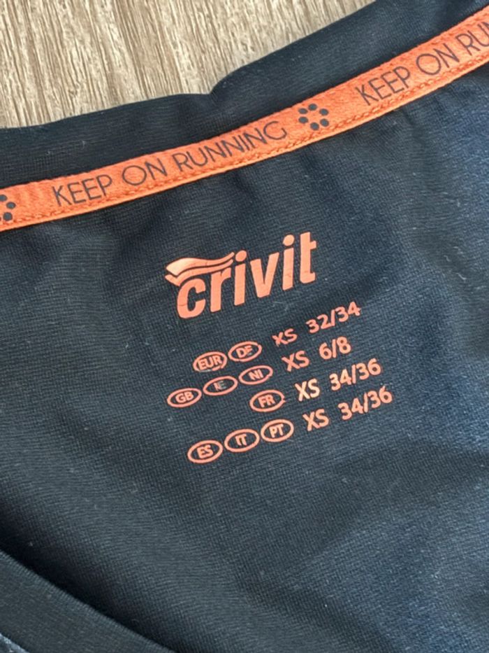 T-shirt de sport manches courtes En bon état Avec logo fluorescent dans le haut du dos Taille xs Crivit