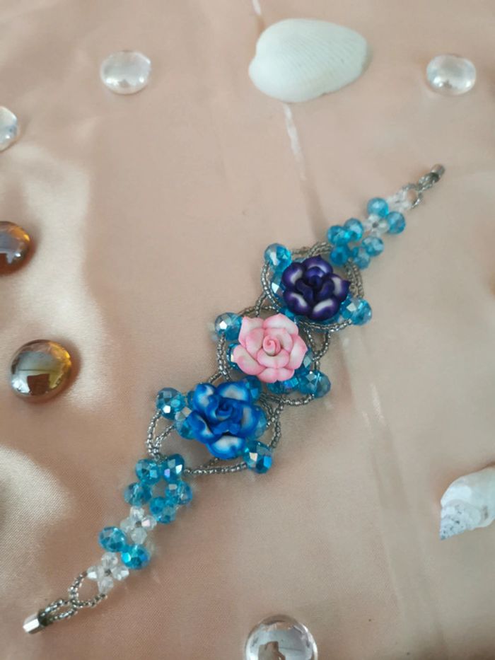 Bracelet. Bleu Argenté. Rose - photo numéro 1