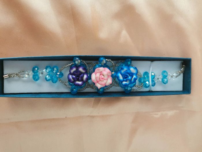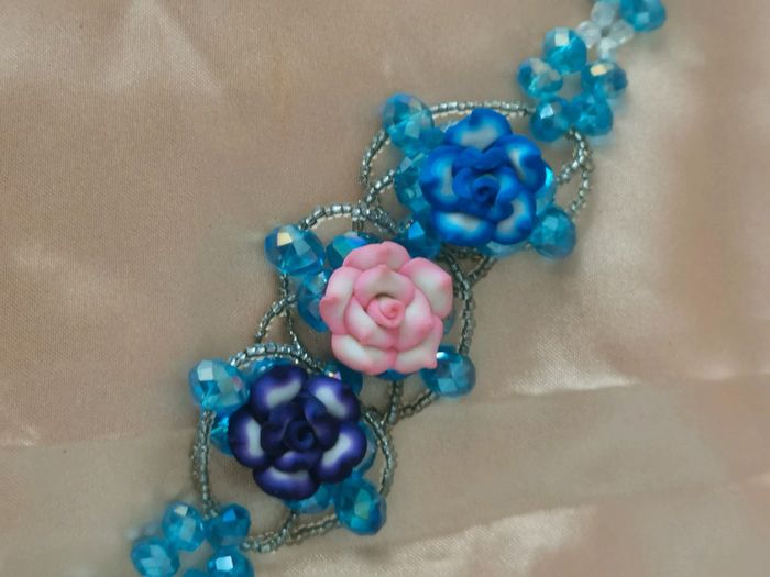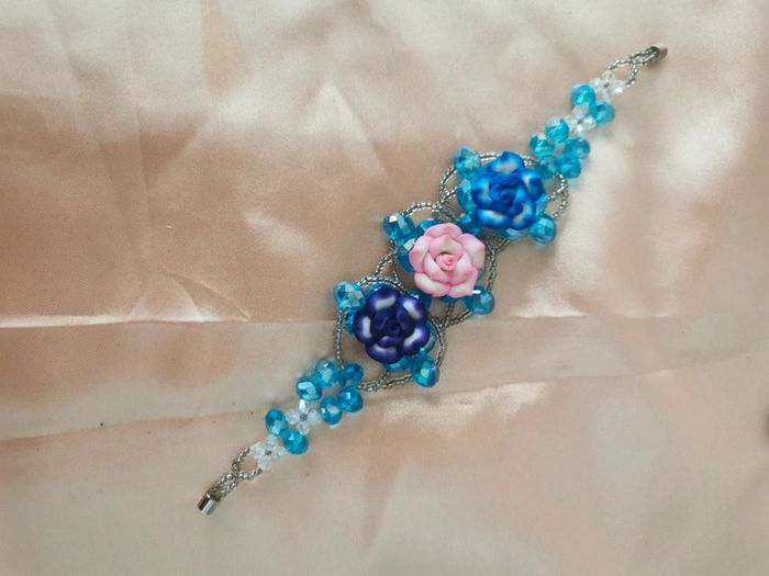 Bracelet. Bleu Argenté. Rose - photo numéro 5