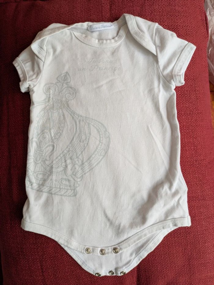 Body garçon marque Dolce & Gabbana taille 6-9 mois. Magnifique la marque parle d'elle même ! Blanc avec dessin d'une couronne pour ce petit roi ! État quasi neuf, juste besoin d'un coup de fer a repasser ! Mes autres annonces du même âge #joeypotter91_garçonneufmois [Sac Smith Toys]