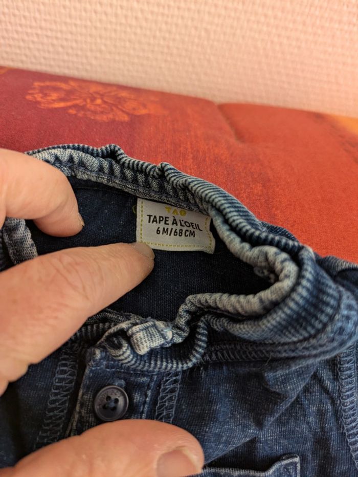 T-shirt manches longues type chemise garçon taille 6 mois imitation jean marque tape à l'oeil avec boutons devant et poche sur le cœur Mes autres annonces du même âge #joeypotter91_garçonsixmois [Sac Smith Toys]