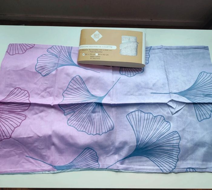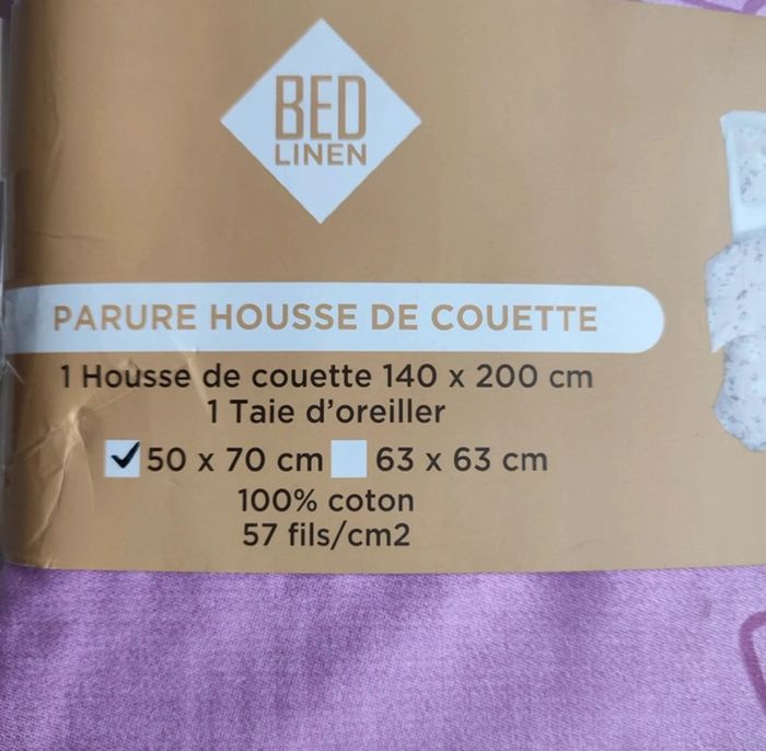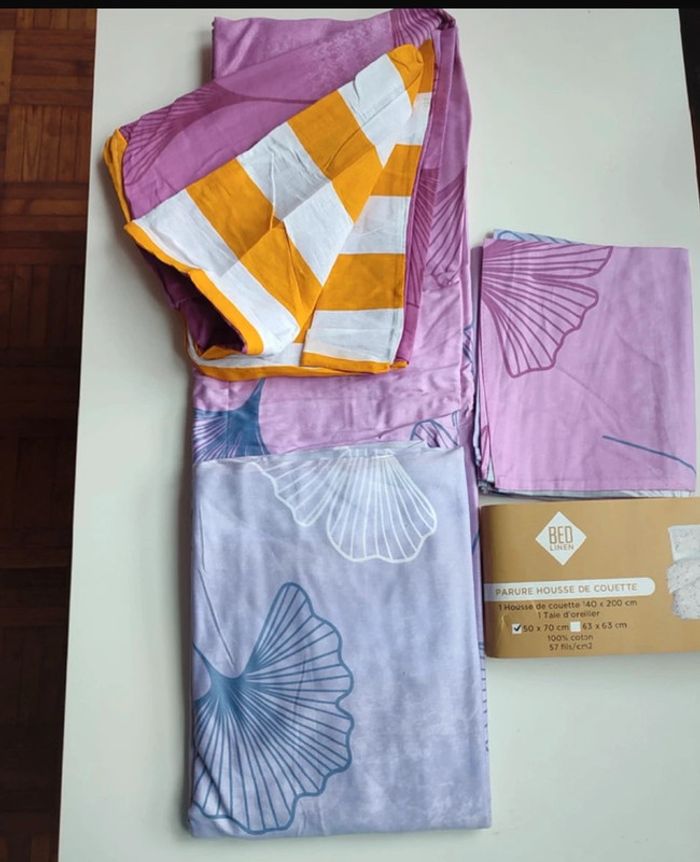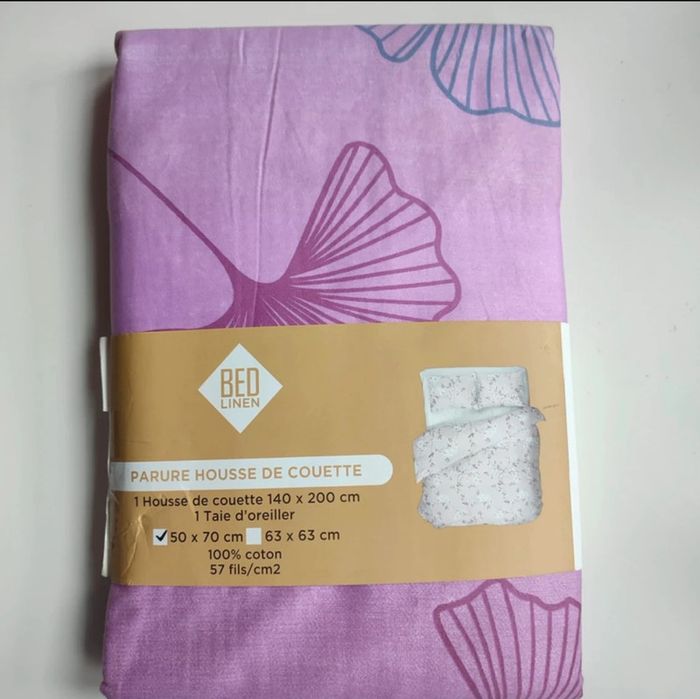 Elle est neuve dans son emballage d'origine de la marque bas linen. 🧶100% coton, 📏140 x200 cm pour la housse 📏 50x70 pour la taie d’oreiller