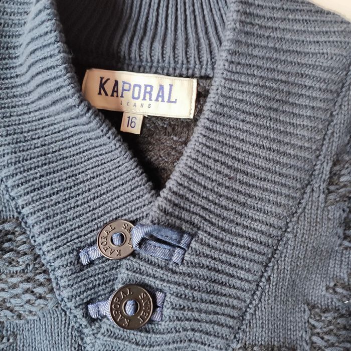 Pull d'hiver gris foncé en maille structurée, 62 % coton, taille 16 ans ou S, Kaporal Junior
