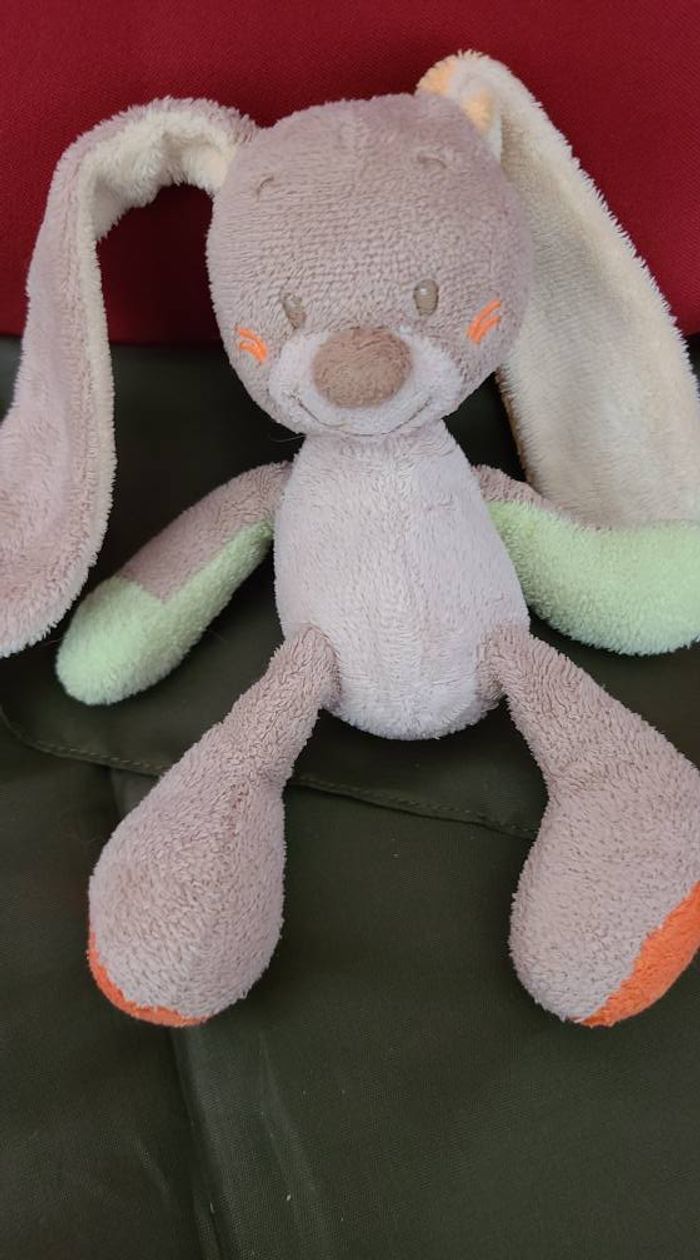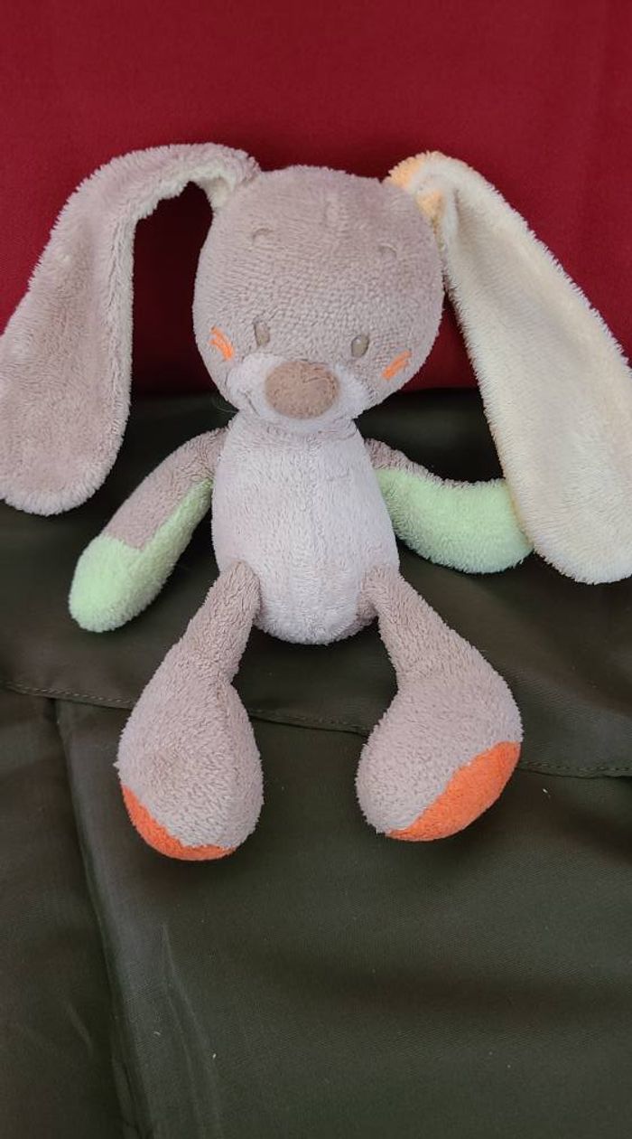 Doudou hochet lapin NATTOU grelot beige orange 16 cm - photo numéro 1