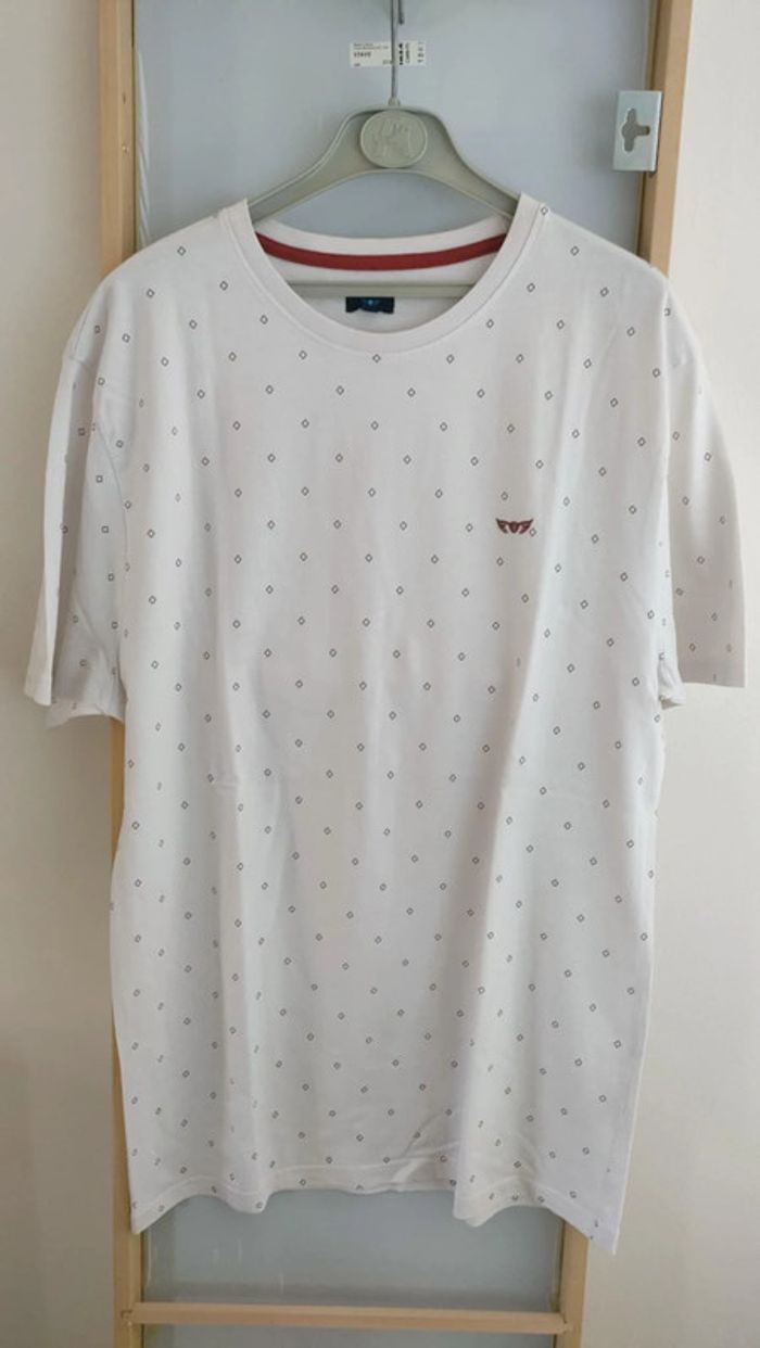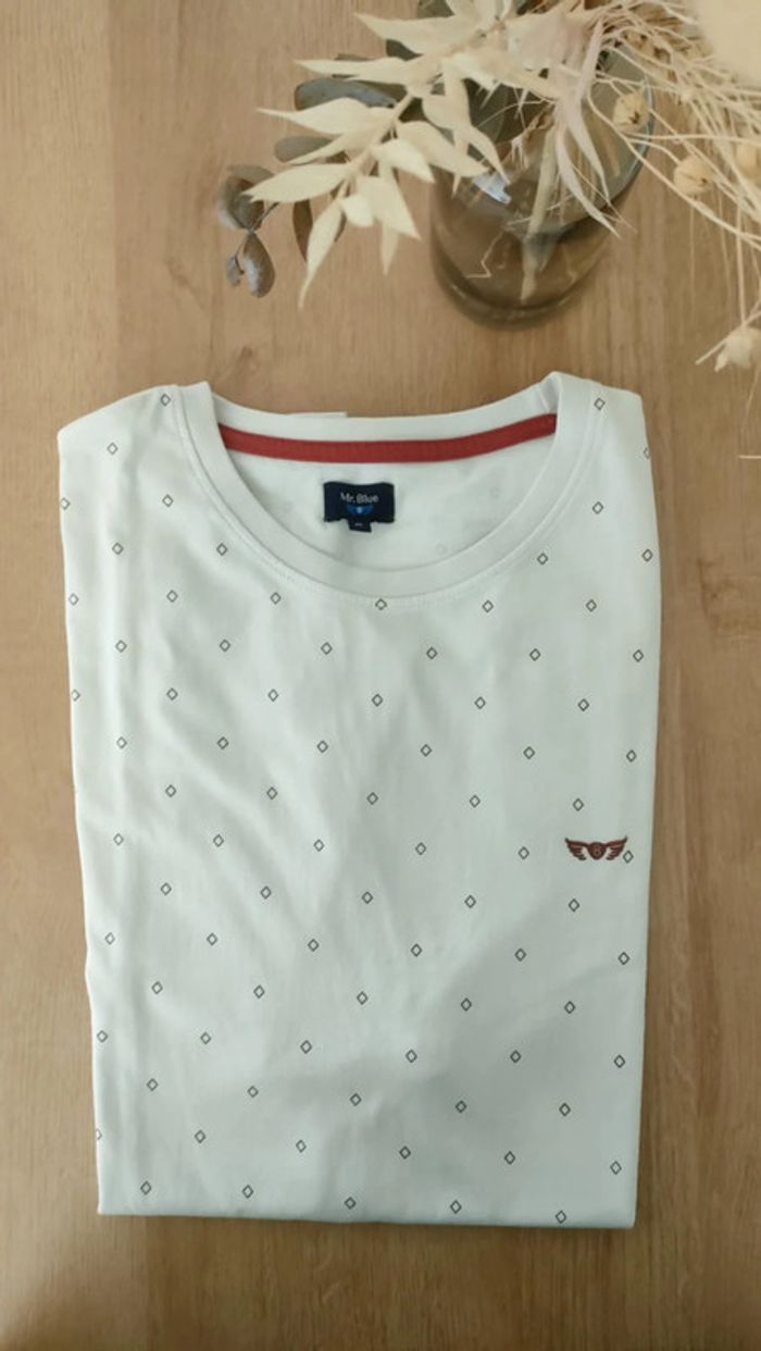 Tshirt Blanc & Bordeaux | Tshirt Motifs | Tshirt Homme XL | Tshirt Mr.Blue, Taille XL - photo numéro 1