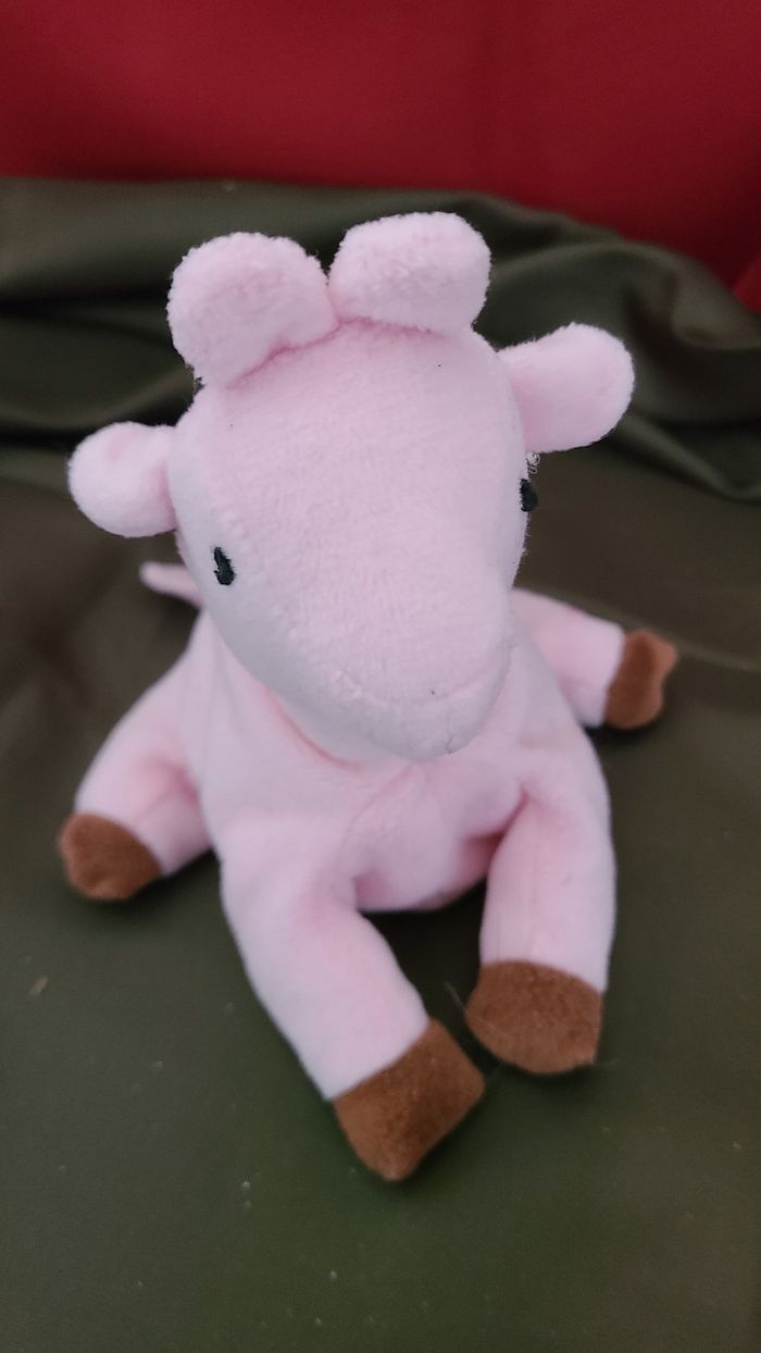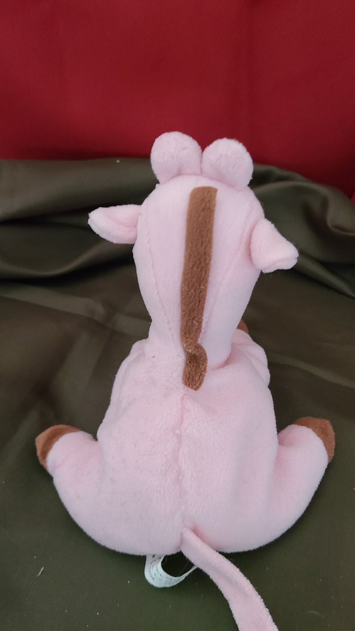 doudou girafe rose en velours gratte avec billes a l'interieur 17 cm marque protech design - photo numéro 5