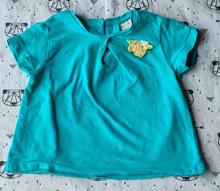 Tee-shirt vert avec un papillon jaune en très bon état de la marque Zara Girl pour fille taille 3/6 mois #neezia33240tshirtfille3mois