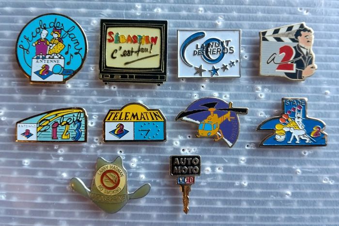 Lot de 10 pin's thème télévision. En très bon état.