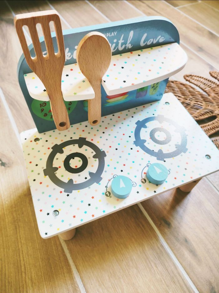 🍳Jeu d'imitation - Cuisine / "Cooking with love"en bois - marque Wood n play- JB1440 🎀Convient dès l'âge de 3 ans 🎀Dimensions 32x20x11 cm environ 🎀Cuisinez comme les grands avec cette mini gazinière en bois. Compacte et esthétique, elle se pose facilement sur une table ou au sol pour des heures de jeu d'imitation ✨Station de cuisine avec deux feux de cuisson ✨Deux boutons rotatifs (cliquetis réaliste) ✨Crédence illustrée ("Cooking with Love") avec horloge et étagère. ✨2 Ustensiles en bois naturel : une spatule et une grande cuillère 🎀Jouet de seconde main pouvant comporter quelques petites traces ❇️N'hésitez pas à créer un lot pour économiser sur les frais de port❇️ Premier âge, Jouet bébé, Jouet d'activité, Jouet ludique, Jouet eveil, Mémorisation, Memoire, aptitude, motricité, jeu Adresse, Montessori, jeu bois, Jouet bois, Jouet vintage, Jeu adresse, jeu apprentissage, dextérité, jeu sensorielle, jeu educatif, activités et Jouet pour bébé, trier empiler, encastrer, jeux et jouets
