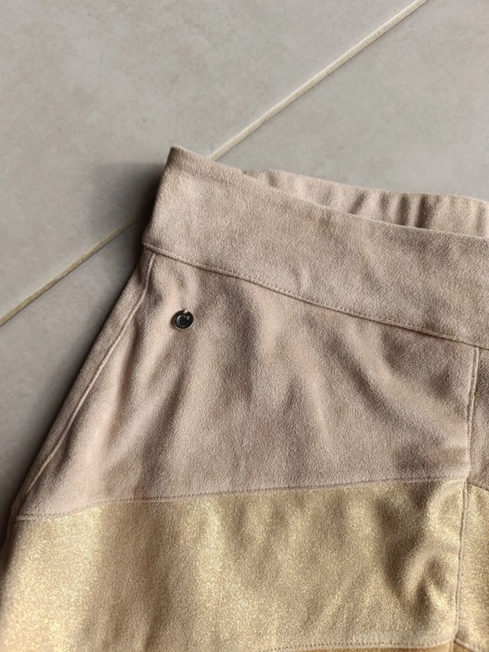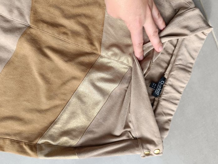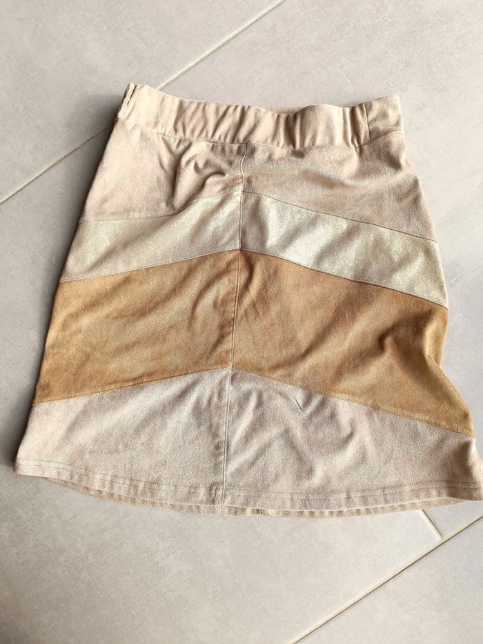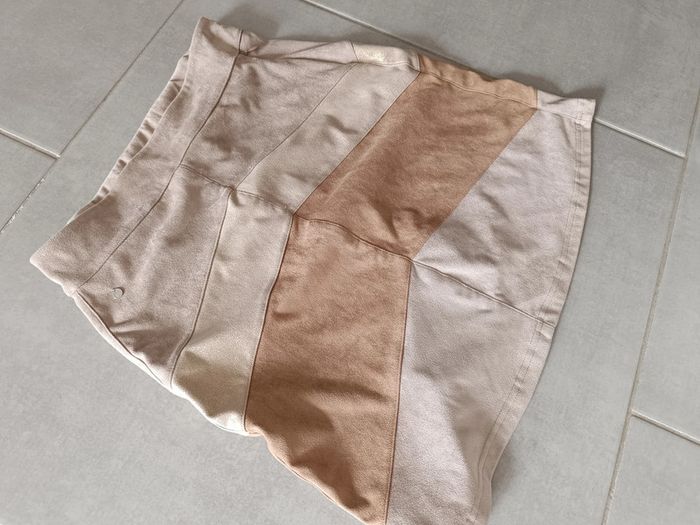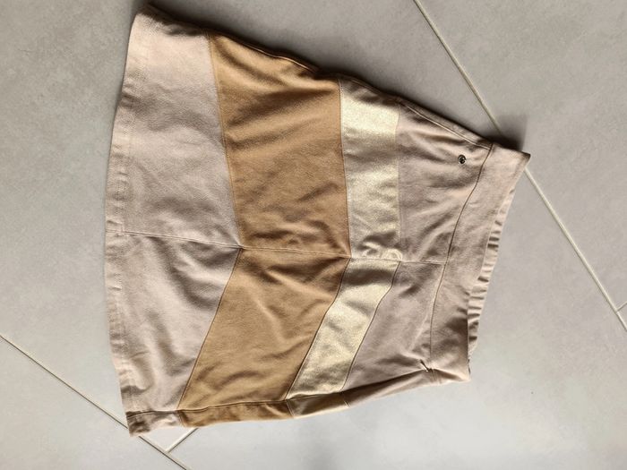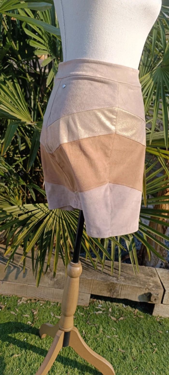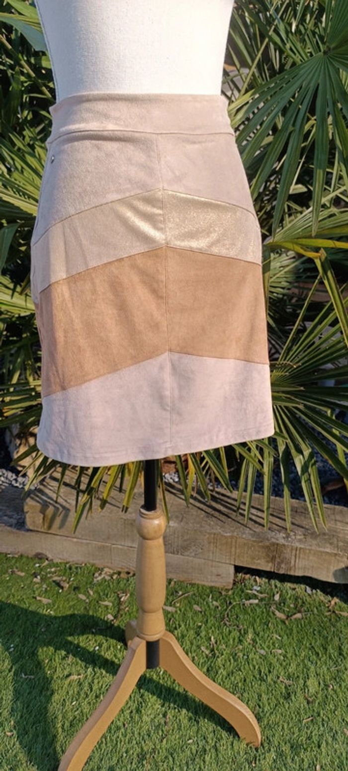 Jupe charlott asymétrique touché peau de pêche douce et élastique taille 38 beige crème et doré #julieVisM #charlottM