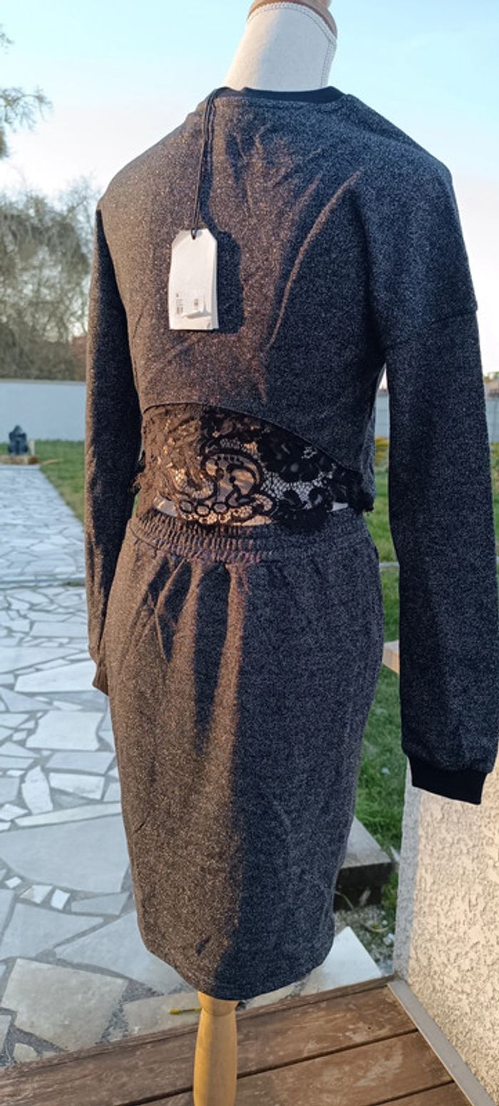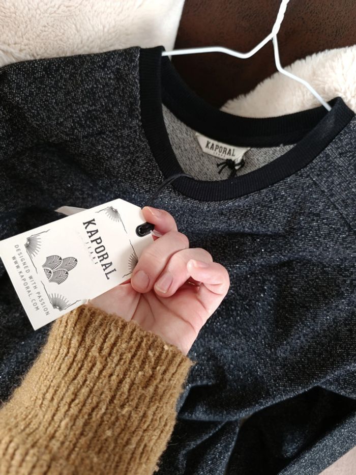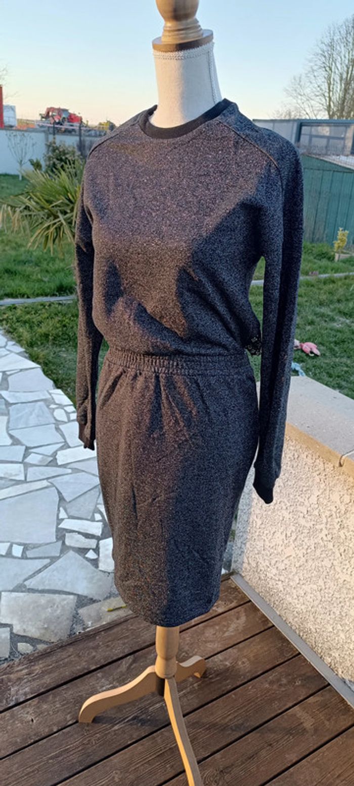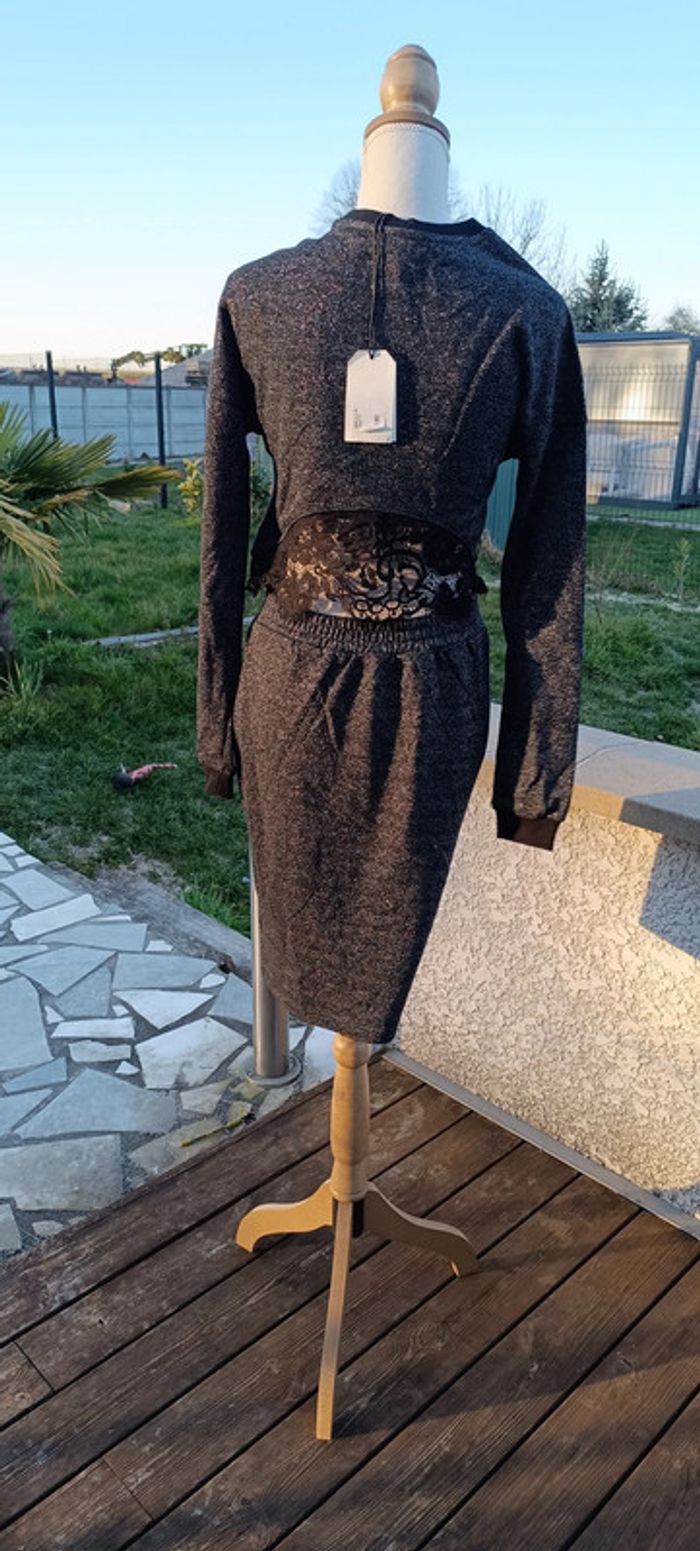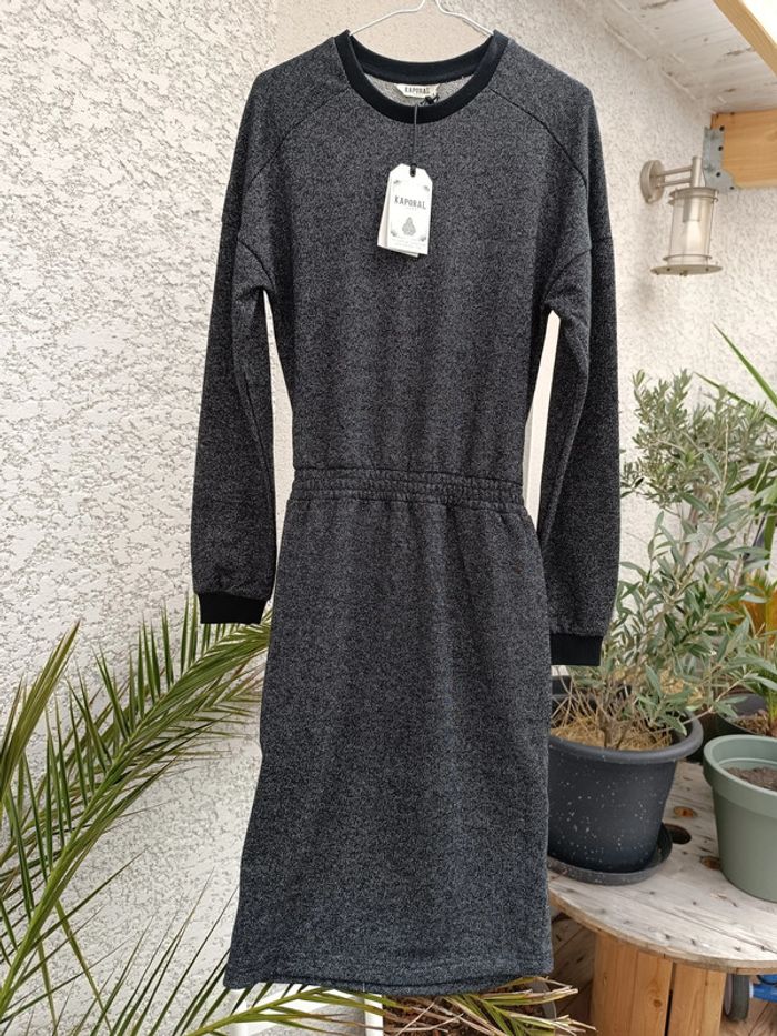Robe Kaporal S neuve mi saison Robe S noir argenté avec détail dentelle visible transparent au dos Ceinture élastique Neuve Taille S Manches longues #julieVisS #kaporal