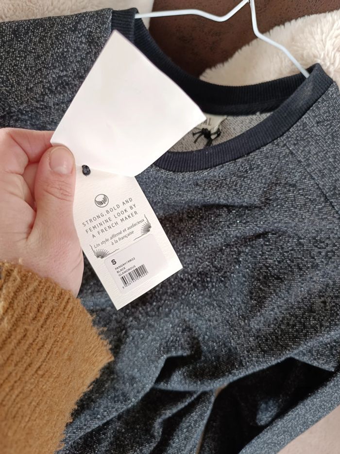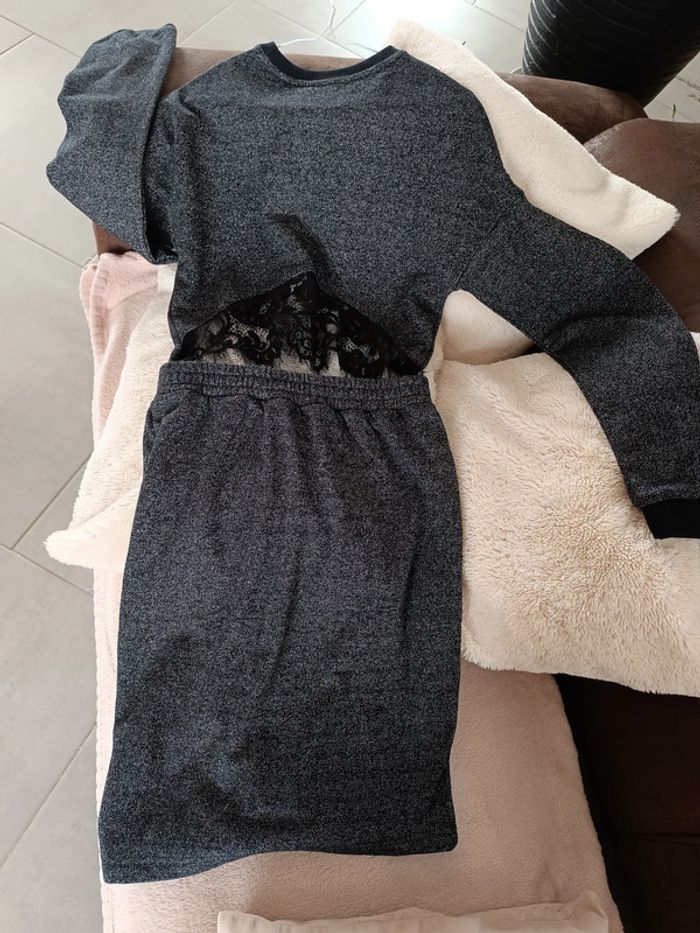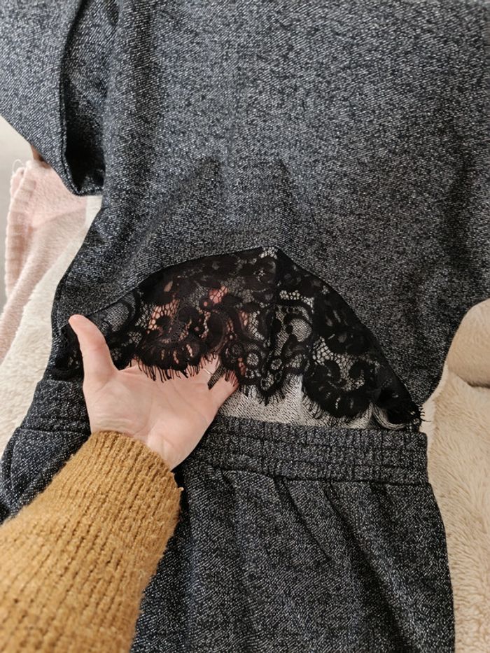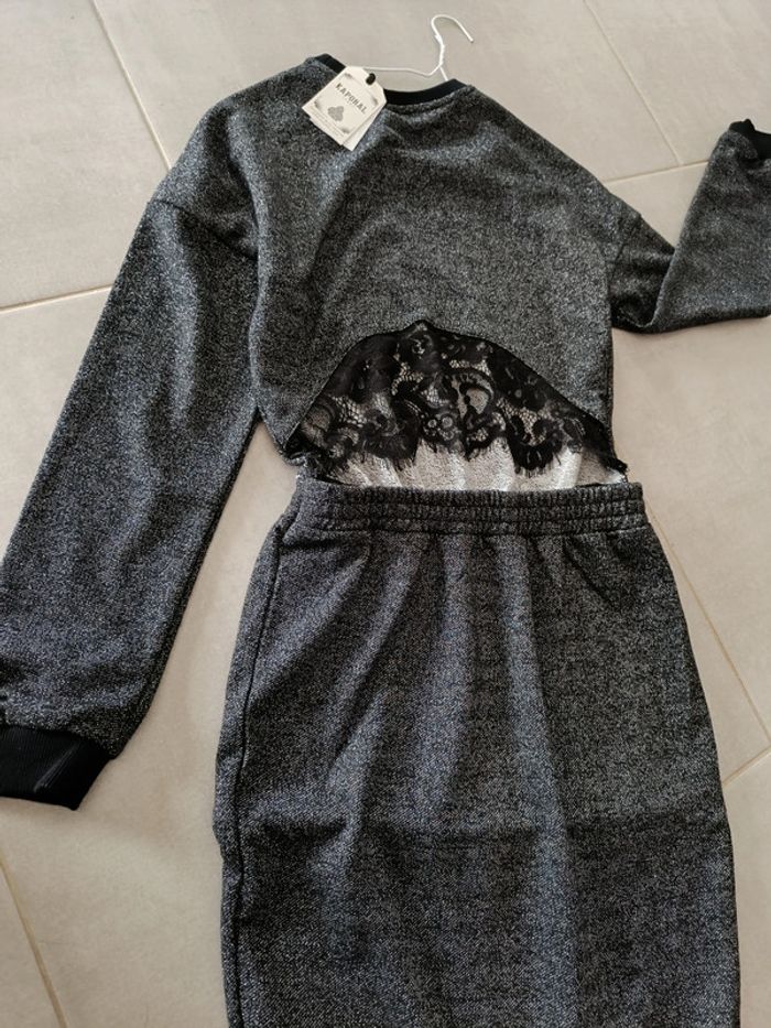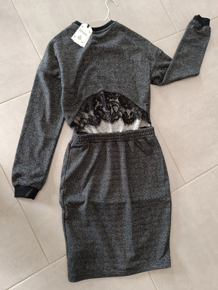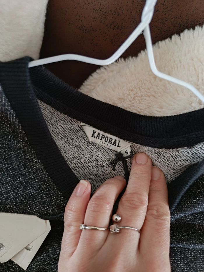 Robe Kaporal S neuve mi saison Robe S noir argenté avec détail dentelle visible transparent au dos Ceinture élastique Neuve Taille S Manches longues #julieVisS #kaporal