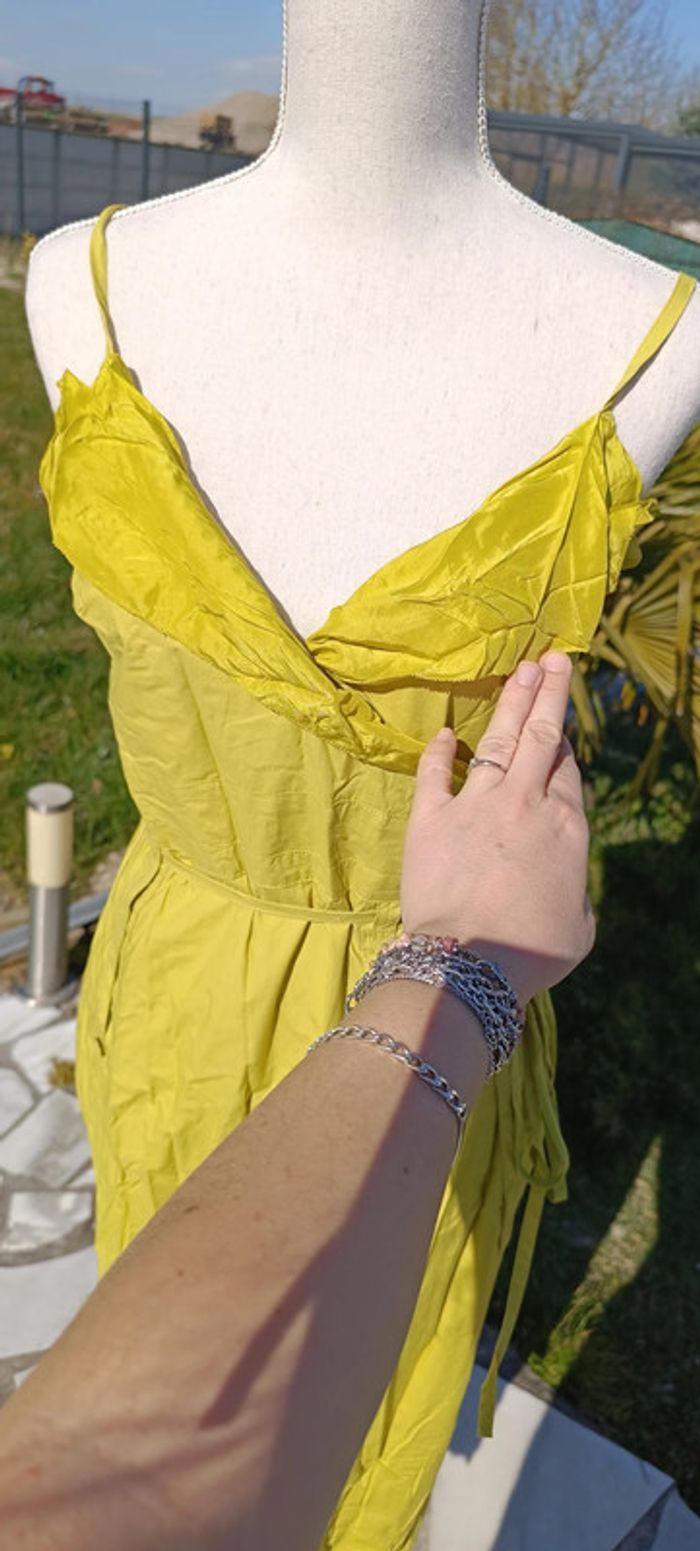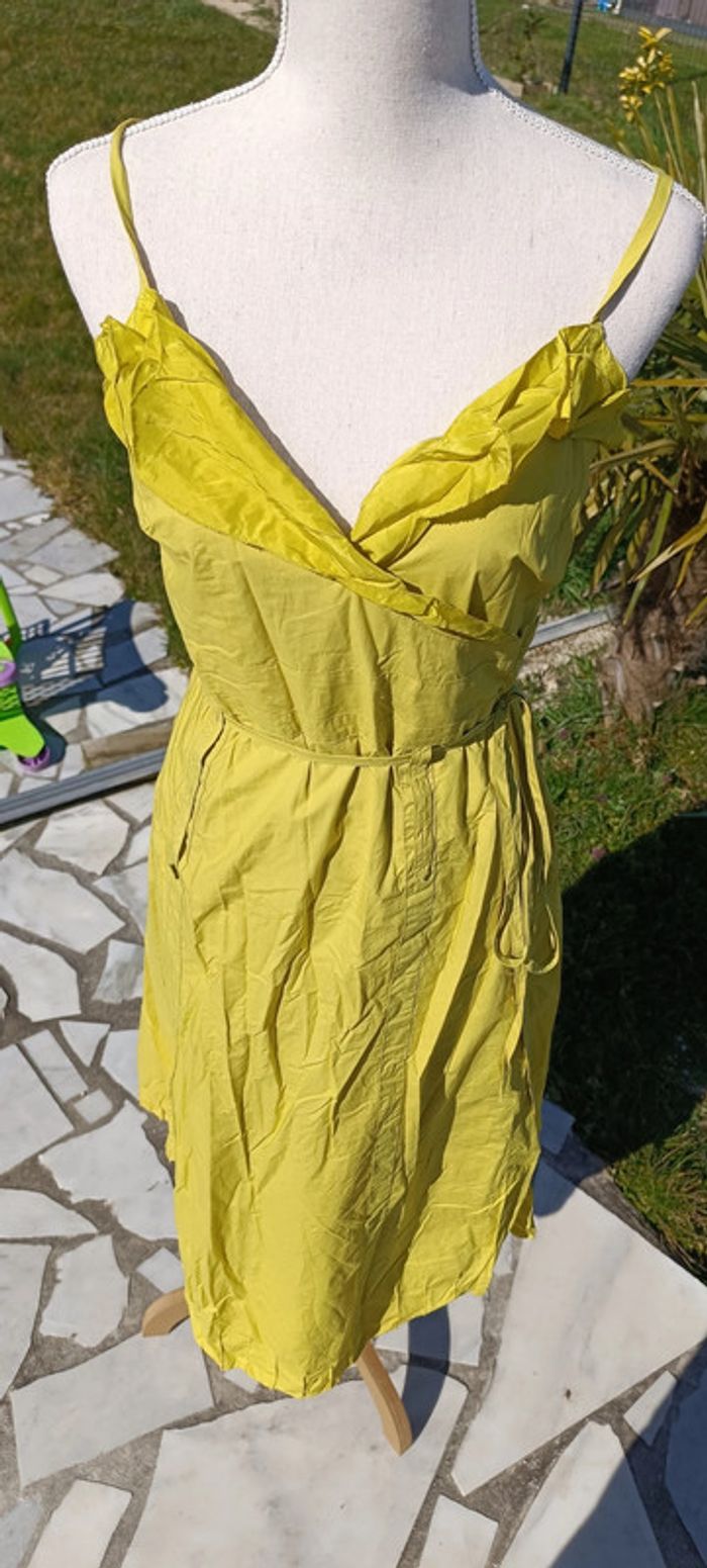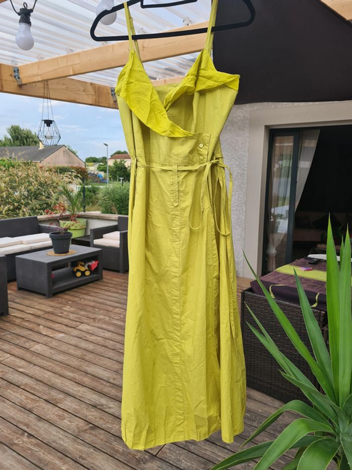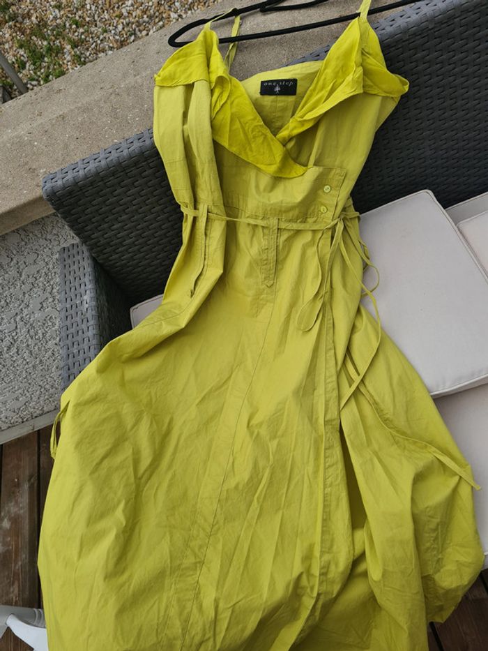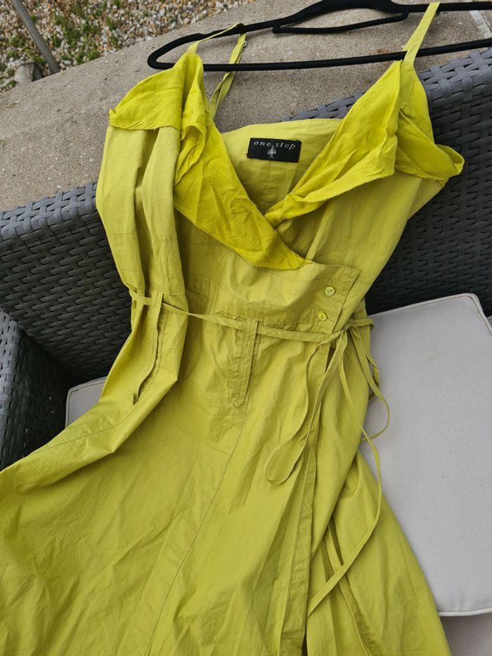 robe portefeuille one step dans les tons jaune vert clair selon la lumière taille S #julieVisS #onestep