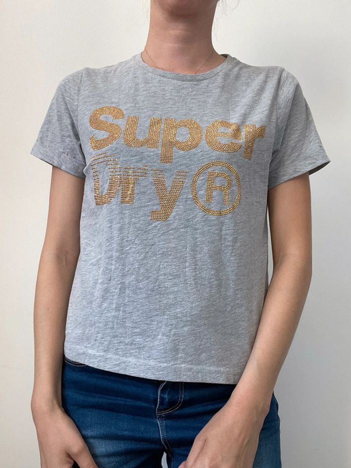 T-shirt gris superdry strass dorés