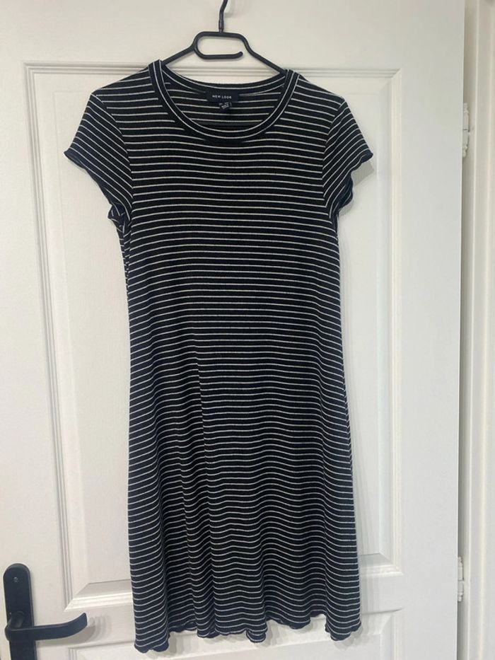 Robe noire et rayures blanches en coton Vendue en 42 mais moulante, convient à un M