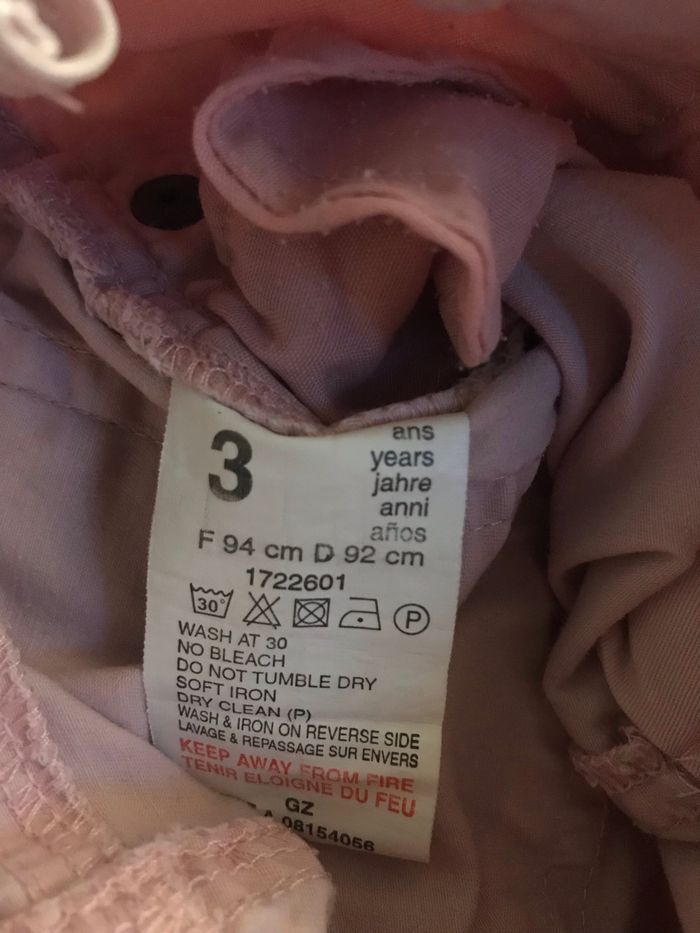 Pantalon de la marque Lisa Rose Taille 3 ans Couleur rose clair Présence de légères tâches sur le bas de la jambe gauche (voir photo) Traces d’utilisation Occasion, bon état