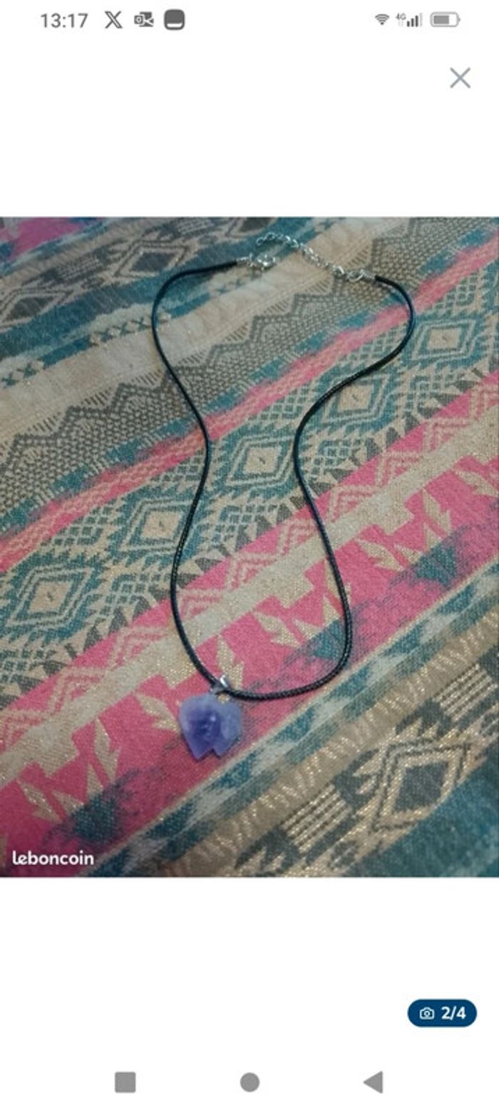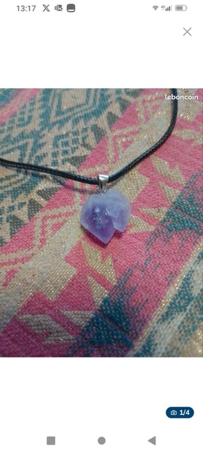 Collier améthyste brute avec cordon en cuire. L'améthyste est une pierre apaisante, elle favorise le calme, l'équilibre psychique et la sérénité. En combattant le stress, l'insomnie ou la colère, l'améthyste favorise la concentration et la méditation.27 cm idéal cadeau. N'hésitez pas à voir les autres bijoux