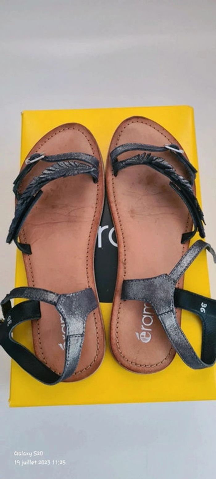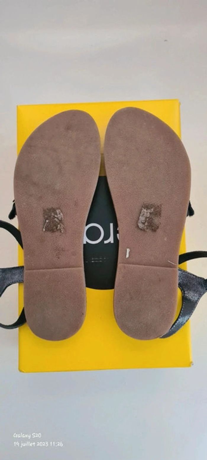 La semelle intérieure comporte des marques de pliure mais les sandales restent en très bon état. Pointure 36