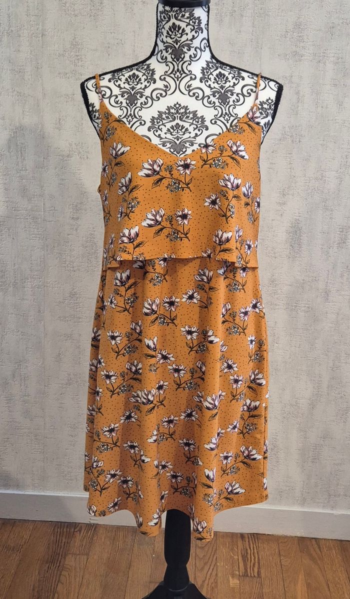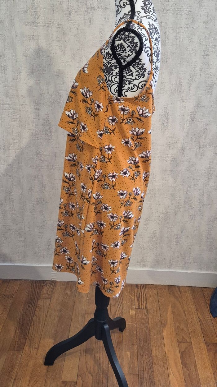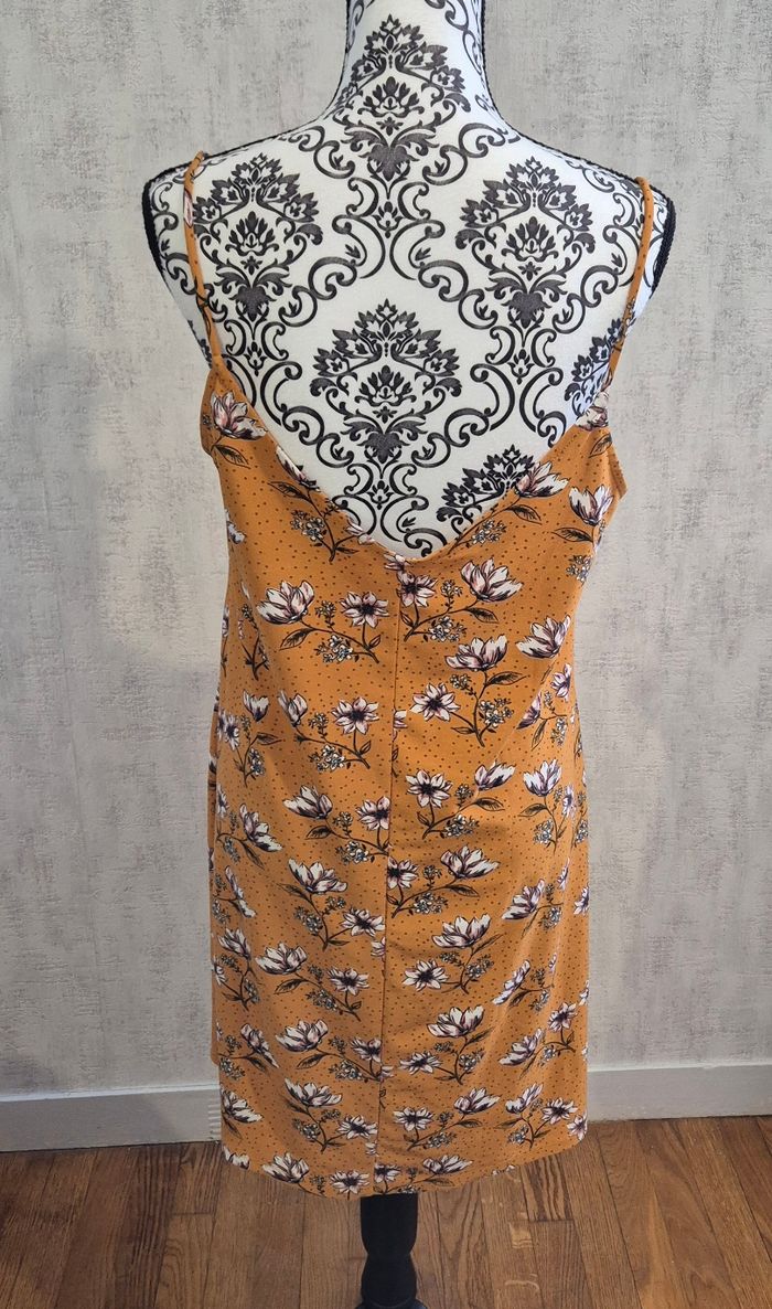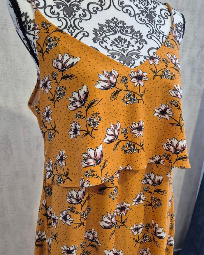 Robe d'été fine bretelle mango moutarde fleurie taille 38 M