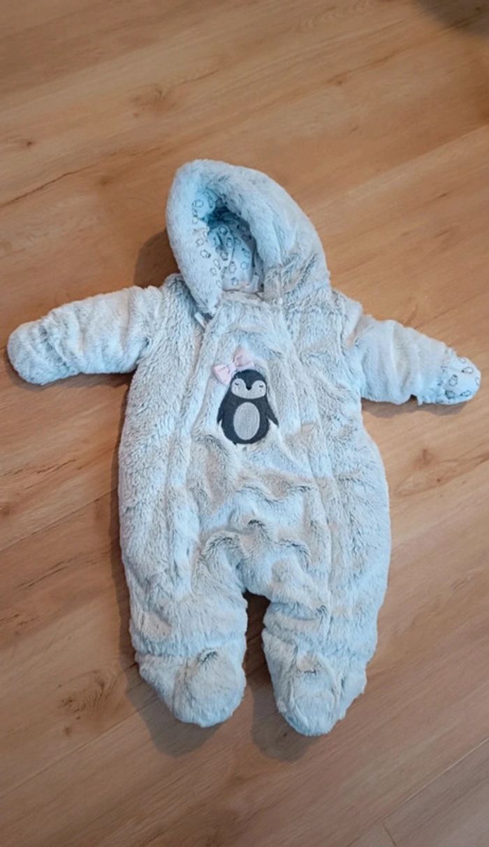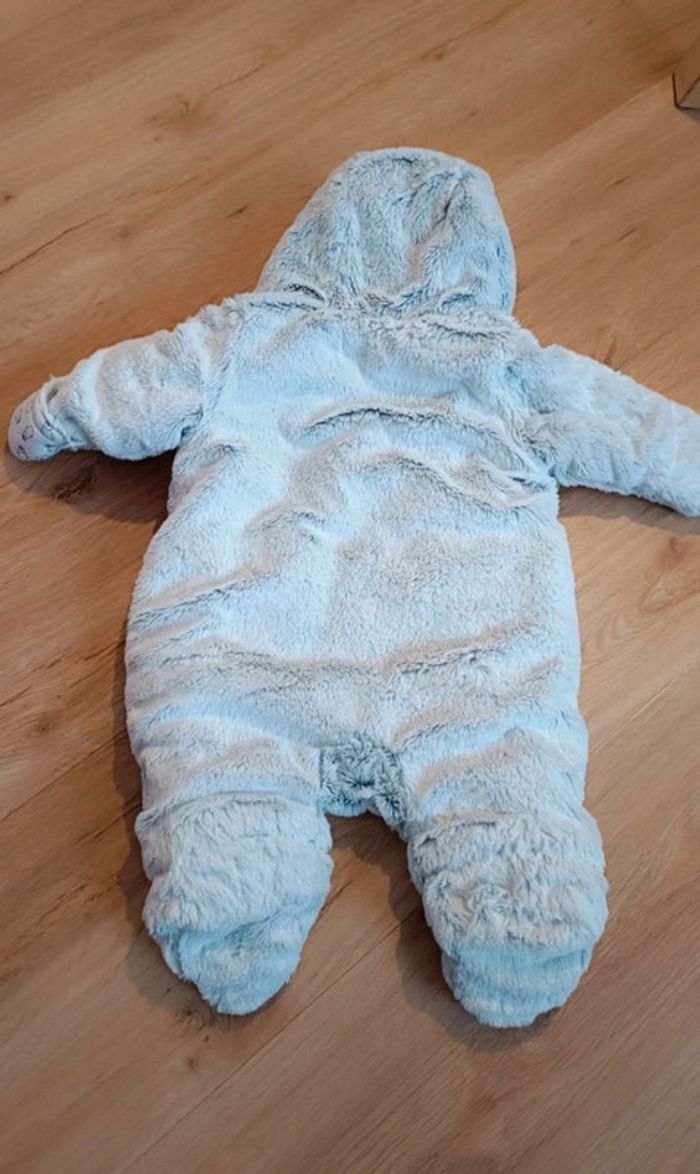 Combinaison toute douce et chaude taille 1 mois. Grande ouverture devant, pratique pour habiller bébé.