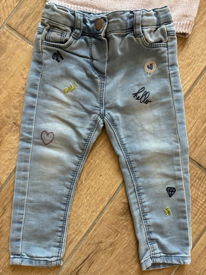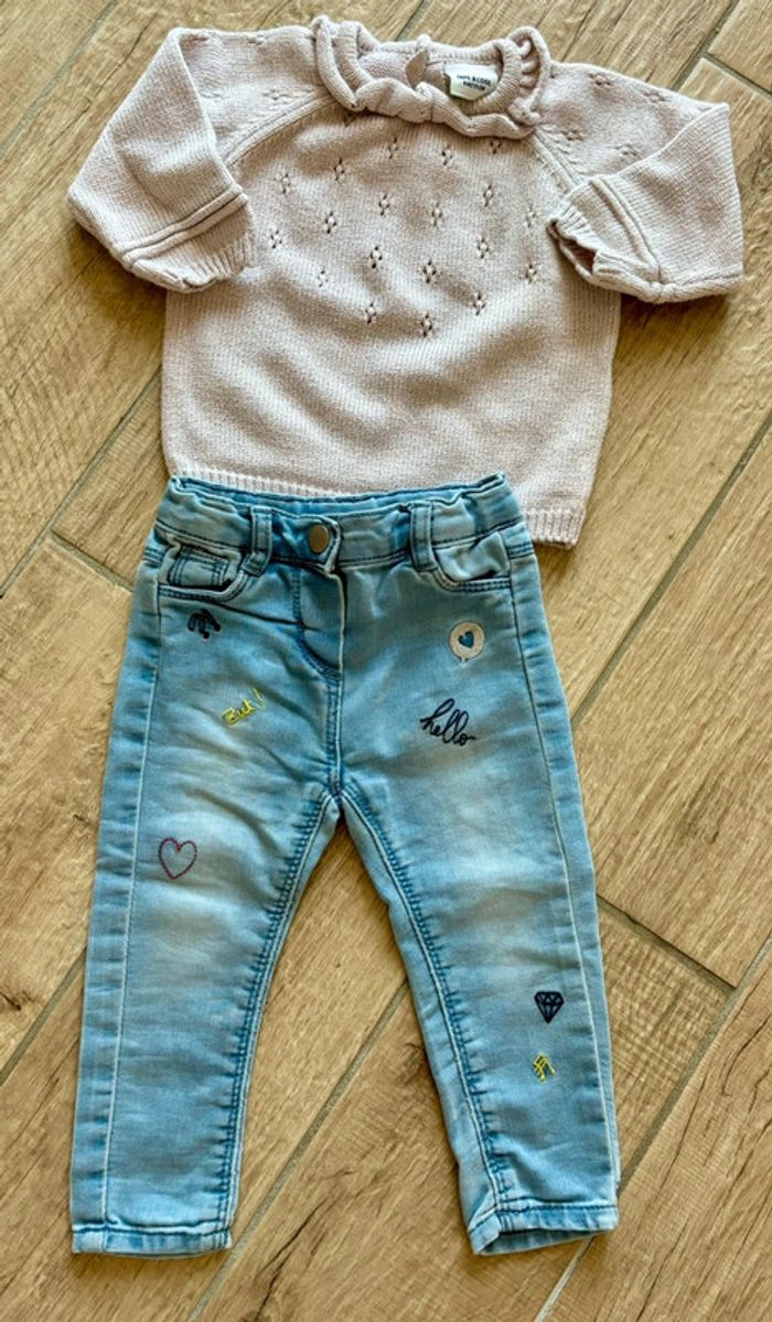 Marque tape à l’œil Ensemble qui comprend : - 1 pull rose clair reflets dorés - 1 jean bleu avec imprimés Taille 9 mois Tout le 9 mois par ici 👉 #pourelena9mois 💵 prix sur les lots alors n’hésitez pas à aller faire un tour dans mon dressing 🤩