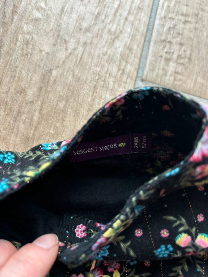 Marque sergent major Neuve juste lavée Couleur noire et motifs fleuris rose/bleu/vert avec liserer dorée Tissu assez épais, plutôt pour de la mi saison voir même hiver Valeur 29,99€ Taille 24 mois Tout le 24 mois par ici 👉 #pourelena24mois 💵 prix sur les lots alors n’hésitez pas à aller faire un tour dans mon dressing 🤩