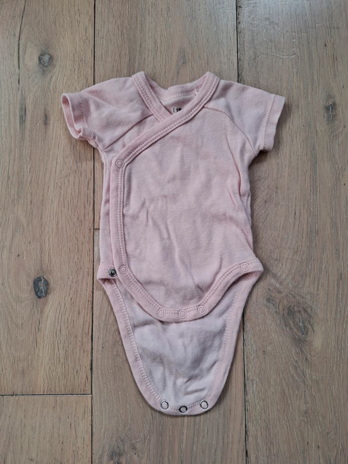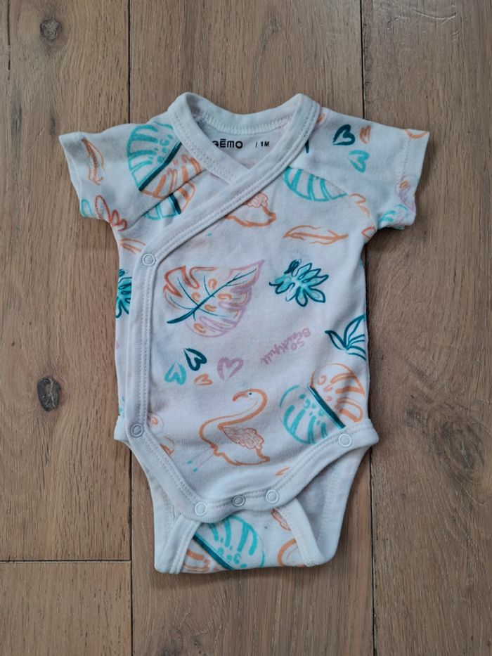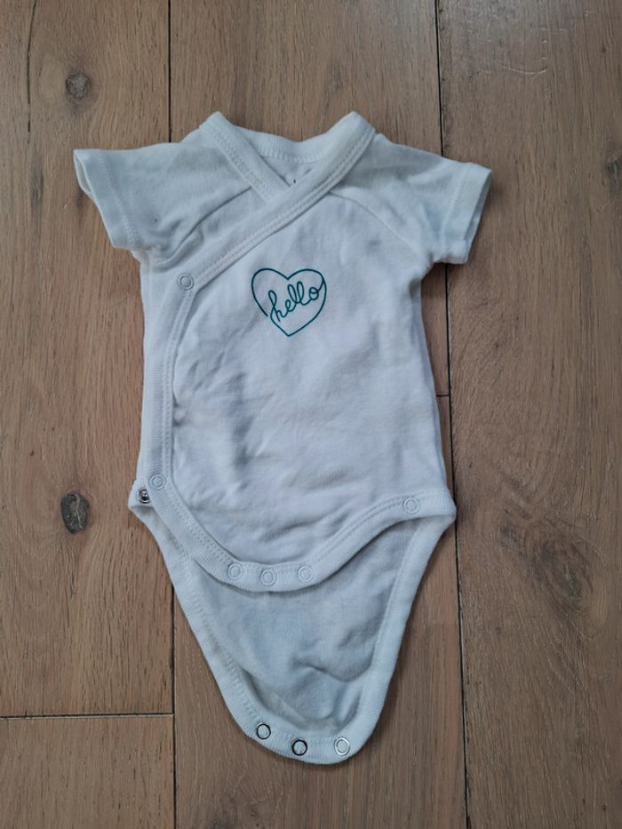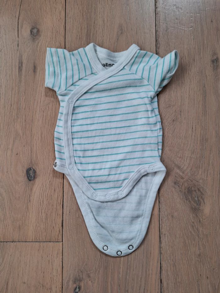 5 bodies manches courtes type "porte-feuille", très pratique pour habiller bébé Marque Gémo Taille 1 mois Peu servis